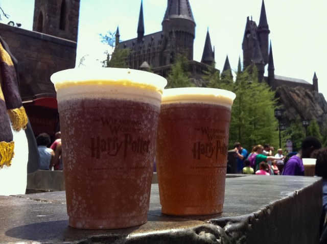 Ungefähr 15 Minuten überlegte ich, ob ich lieber Kürbissaft oder Butterbier trinken sollte. Irgendwann entschloss ich mich für Butterbier. Und ich muss sagen: Lecker. Ich hab keinen blassen Schimmer, was da drin war. Kein Alkohol zumindest. Und Sahne oben drauf. Aber der Rest blieb mir ein Rätsel. Ich wusste nur, dass ich gerne noch einen Becher davon gehabt hätte. Zuhause auf dem Balkon an Sommertagen, die ein blasses Abziehbild der Sommertage Floridas wären.
