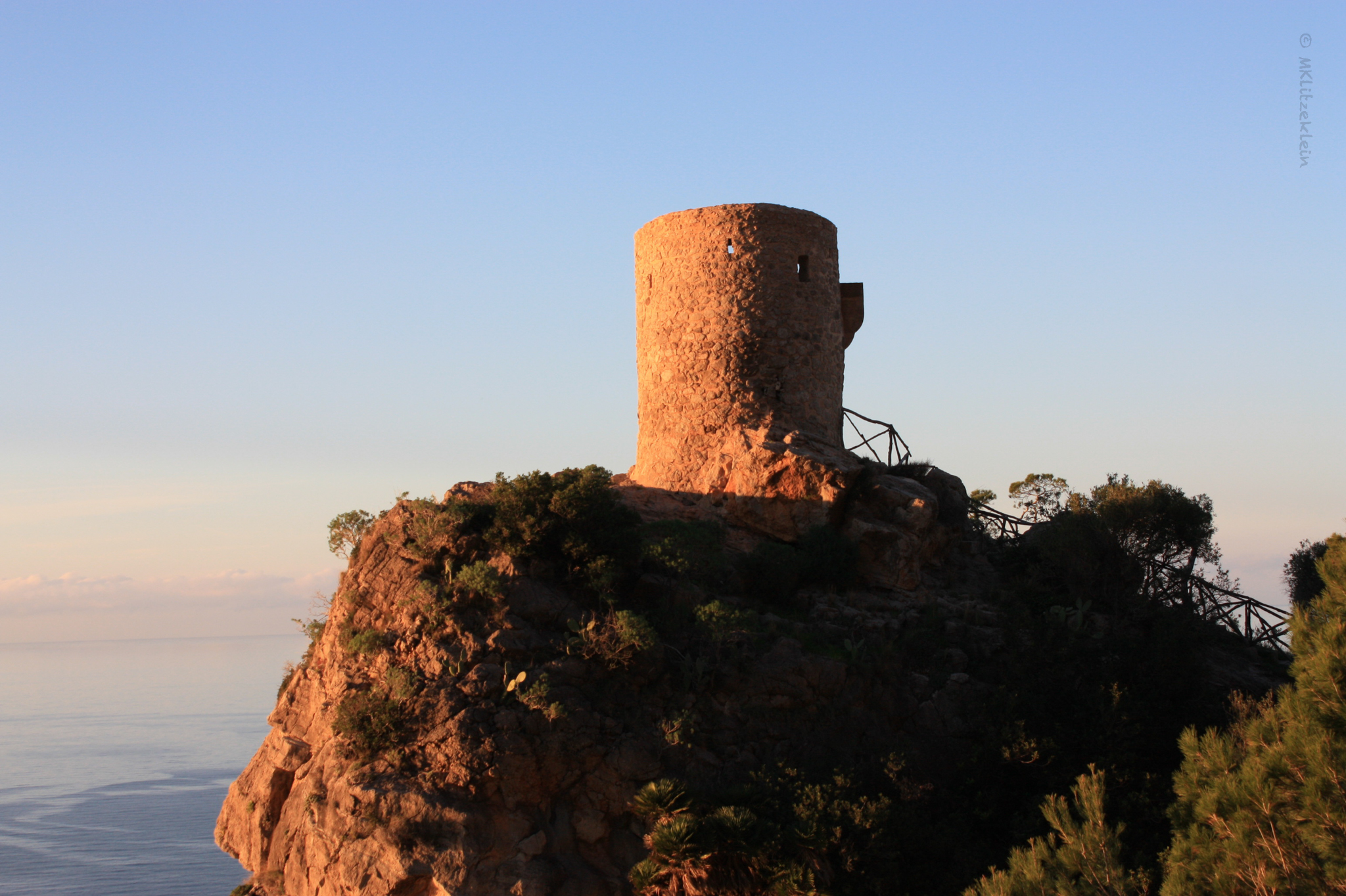 Gesättigt sollte man nie Kurvenstraßen entlang fahren. Einfach keine gute Idee. Aber da man hier nicht anders weg kam, musste das wohl sein. All der Frust war vergessen, als wir hinter Banyabulfar an den Geisterturm Torres des Verges kamen. Ein altbekannter Freund. Herrlich, ihn wiederzusehen. Genau ein Jahr später.