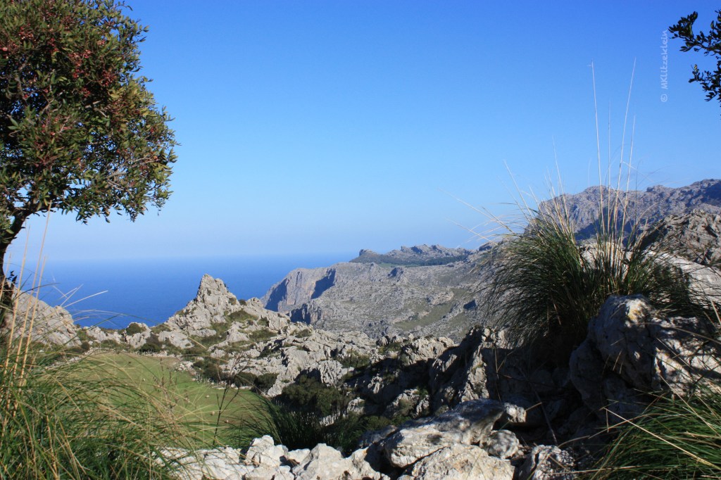 Vorbei am Kloster Lluc parkten wir dann mitten im Nirgendwo im Halteverbot. Direkt vor einem riesigen Tor, das zu einem Weingut führte. Durch eine kleine Öffnung im Zaun schlüpften wir dann auf unseren Wanderweg. Eigentlich eine ganz ruhige, angenehme Route, dachten wir. Denn erst einmal ging es auf einem breiten Weg verschlungen bergab. Vorbei am Lagerhaus des Weinguts, vorbei an einem riesigen Weinberg. Im Hintergrund die Berge. Es sah beinahe mystisch aus. Überall klingelten die Schafsglocken. Hier und da tauchten sie auf.