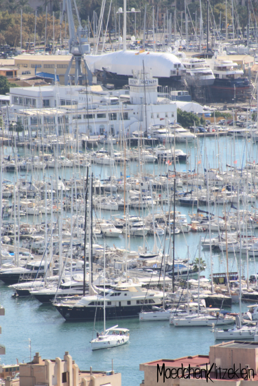 Ist man erst einmal die Stufen empor geklettet, steht oben auf dem runden Turm, dann hat man einen 360Grad Blick auf einfach alles. Und wenn ich sage alles, dann meine ich auch alles. Die Hauptstadt Mallorcas liegt dir zu Füßen. Die Häuser stapeln sich quasi unter dir, erstrecken sich bis in weiter Ferne und der Blickfang ist ganz klar der Hafen, mit dem dahinterliegenden Meer. Welches bezaubernd in der Sonne glitzerte. Dachten sich wohl auch die Yachtbesitzer und düsten alle los. Sah aus, als wäre der Hafen innerhalb 10 Minuten leer, so wie sie in Scharen nach draußen zogen.
