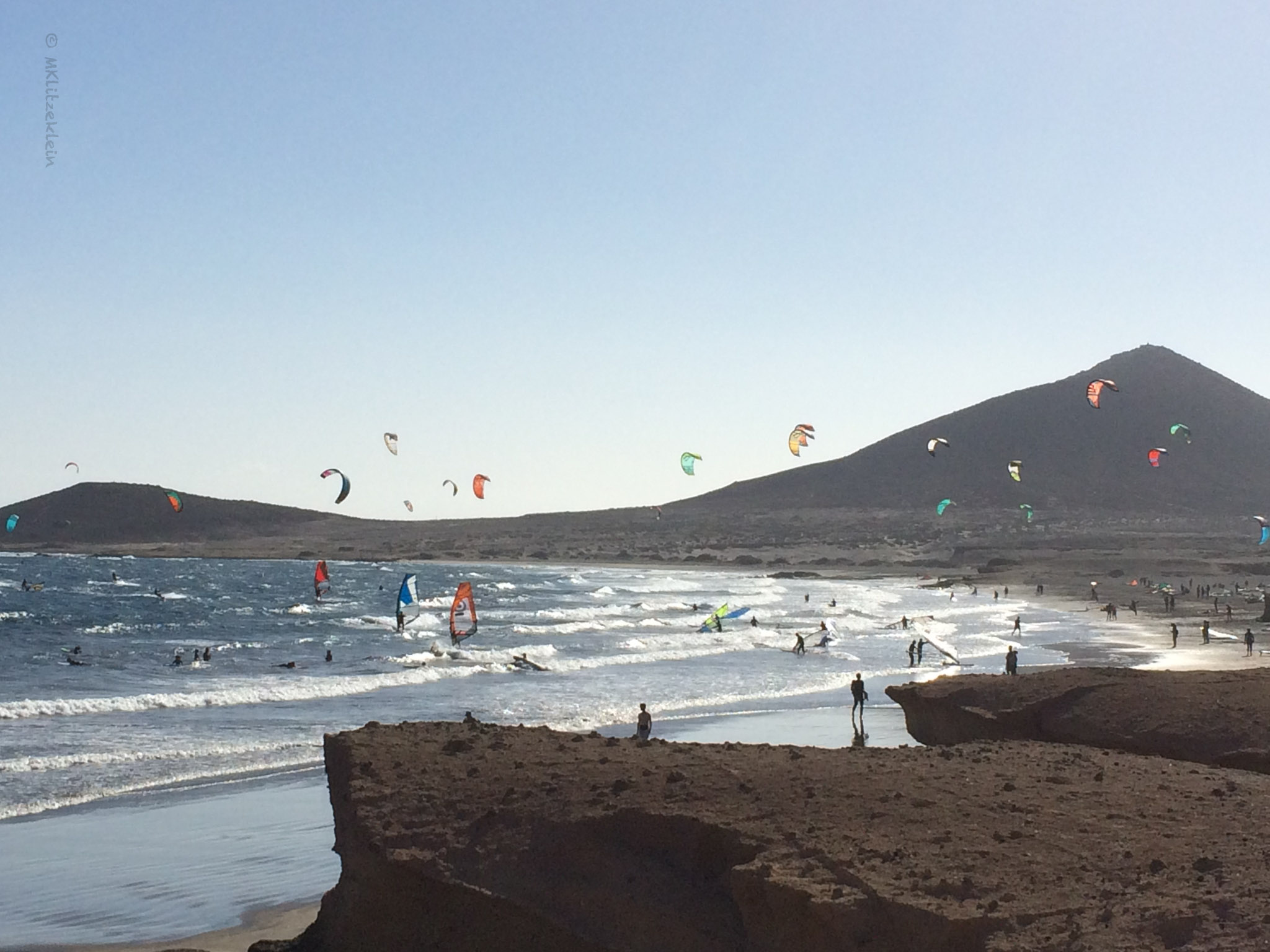 Zu diesem Ort kann ich nur eins sagen: Es ist verdammt heiß hier im Süden. Pflanzen wachsen kaum welche, alles ist trocken. Dafür bietet El Medano ganz wunderbare Surfershops und die besten Bedingungen zum Windsurfen und Kiten. Während also die ganzen Surfer mit gefühlten 200km/h dem Horizont entgegen düsten, saßen wir gelassen auf der Promenade und tranken Kaffee. Obwohl sich hier wirklich Cafe an Cafe reiht, bekommt man kaum einen Platz. Alle wollen die Sonne nutzen, alle wollen dem Spektakel auf dem Wasser zusehen. Es ist ja auch einfach herrlich. (Natürlich schaffte ich es nicht mir ein Brett und Rigg zu leihen. Wofür ich dann auch Zuhause direkt hart ausgelacht wurde.)