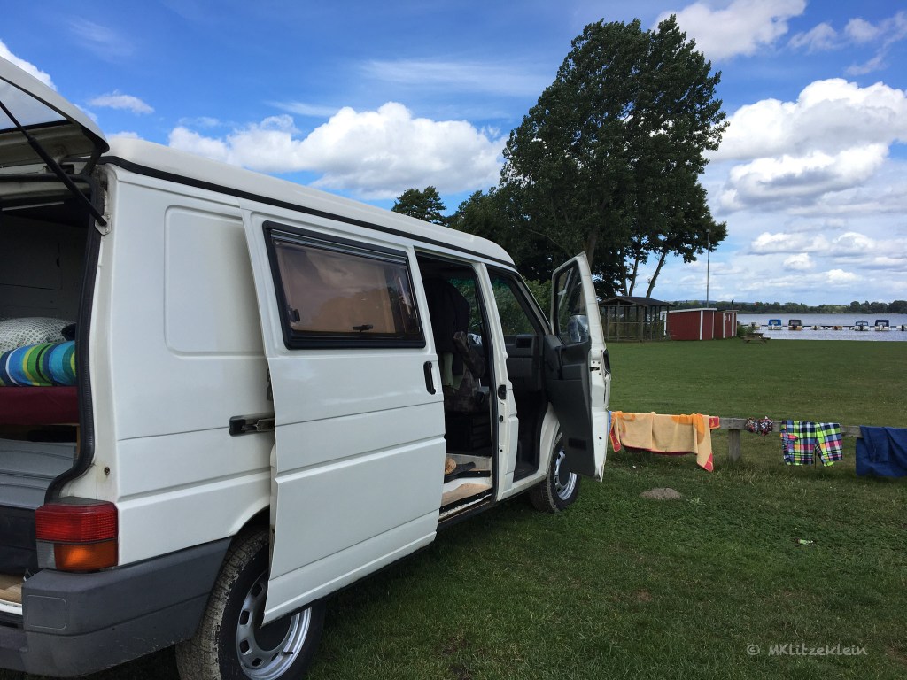 Wieder ging es an die Suche nach einem Stellplatz. Ich hatte mal wieder Maps zu Rate gezogen und wir fuhren in einen kleinen Ort, der für uns eine schmale Parkbucht am Wasser bereit hielt. Zwei kleine Punkte gab es dann doch, die etwas störten. Vor allem die Mücken. Die waren hier wirklich penetrant am nerven. Und außerdem war der Parkplatz direkt im Ort und somit crashten wir dann erstmal einen SUP-Kurs.