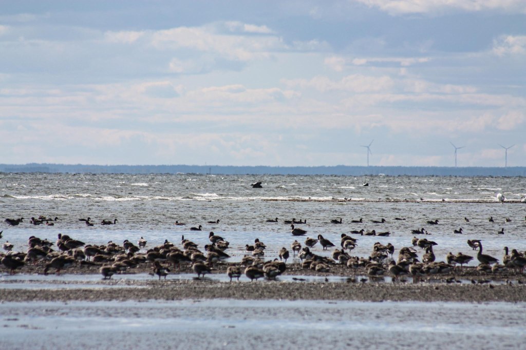 Tatsächlich. Mit dem Fernglas konnten wir sie erahnen. Ganz weit hinten und ganz klein. Hauptsächlich waren hier Gänse unterwegs. Aber dann tauchten sie plötzlich auf: Drei Seeadler. Sie müssen riesig gewesen sein. Durch das Fernglas konnte ich sie beim Fressen beobachten.
