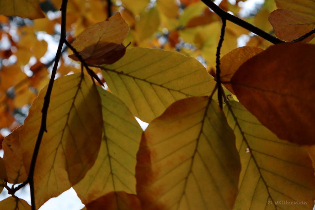 Dafür führte uns unser heutiger Wanderweg aber über den Ravensberg. Der Weg dorthin ist super schön. Er führt auf weichen Waldpfaden den Berg hinauf. Man kann den Herbst noch einmal ein bisschen bunter erleben. Kleine Vogelschwärme zogen über meinen Kopf hinweg und ich war glücklich. Oben angekommen vermieste die Suppe an Wolken uns dann aber den Ausblick. Fernsicht war hier nicht zu holen.