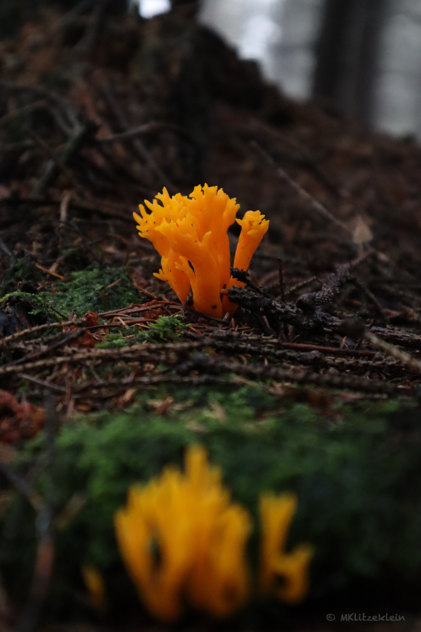 Ganz stimmt das auch nicht, denn wir fanden spannende Pilze in sämtlichen Farben und Formen. Diese orangen Freunde hier sehen aus wie Anemonen. Kann mir jemand sagen, wie die heißen?
