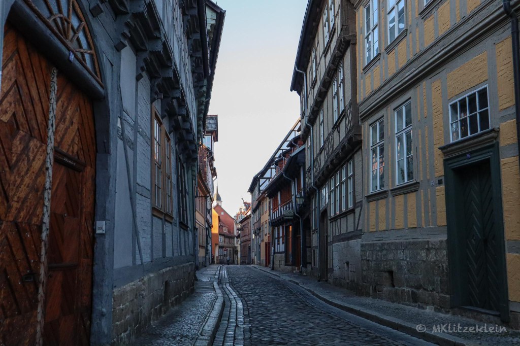 In Quedlinburg gibt es eine kleine Standardrunde, die ich laufe. Hierbei muss ich immer einmal über den Marktplatz geschlendert sein, durch den Schuhhof, einmal durch die Hölle und am Finkenherd vorbei. Manchmal weite ich die Runde zum Schlossberg aus. Allerdings sind meistens viele Stände zu besuchen und nette Sachen zu bestaunen, sodass die Runde dann doch eher kurz wird.