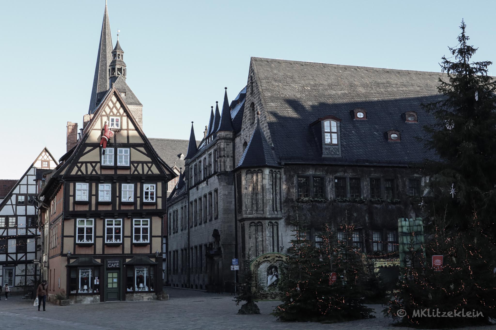 An einem Samstag mitten im Dezember ist die Stadt eigentlich voll. Weihnachtsmarkt auf dem Marktplatz, Advent in den Höfen an den Wochenenden. Ich normalerweise mitten drin. An diesem Samstag war ebenfalls Markt. Hier tummelten sich ein paar Menschen. Wir fragten uns, ob es hier keine Maskenpflicht gab? Am Finkenherd wiederum fanden wir keinen Menschen. So leer hatte ich Quedlinburg noch nie erlebt.