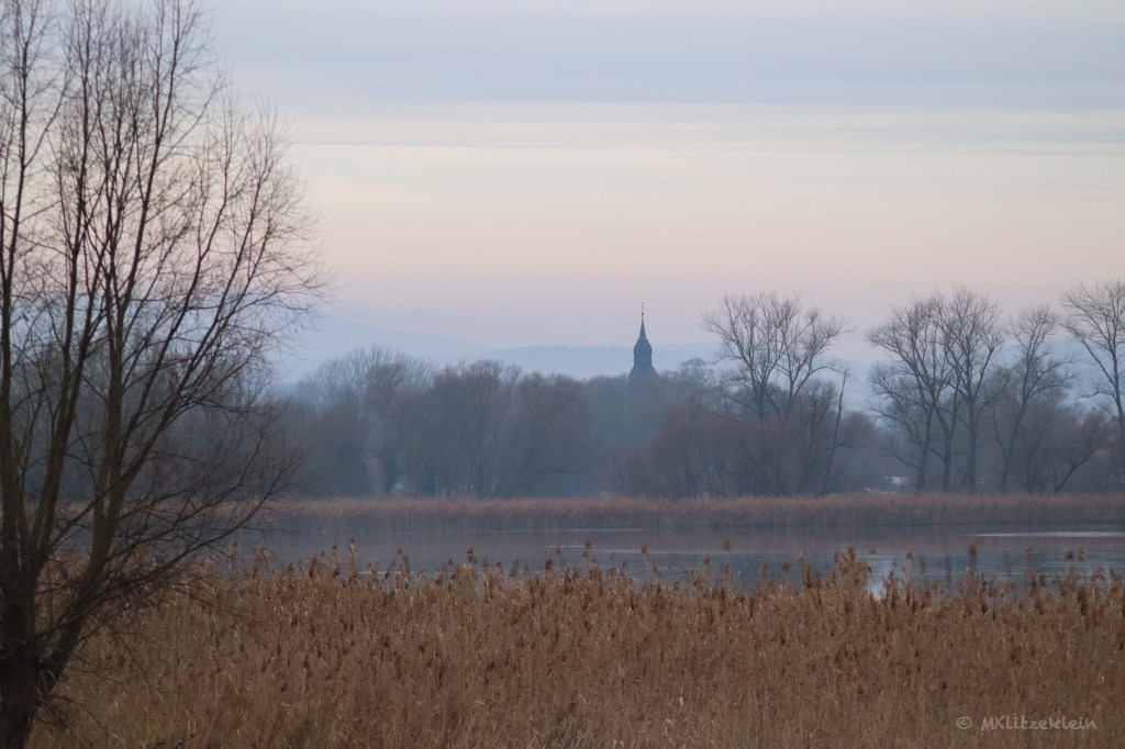 Die Luft ist kalt und das Schilf wiegt sich im leichten Windhauch. Die Füße stecken in den Wanderschuhen, obwohl es nur ein 5 km Spaziergang ist. Erst sieht man vom See gar nichts, doch dann taucht das Wasser zwischen den Bäumen und hinter dem Schilf auf.