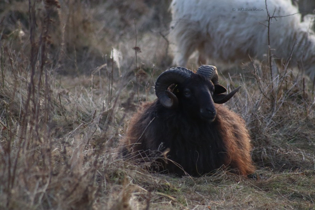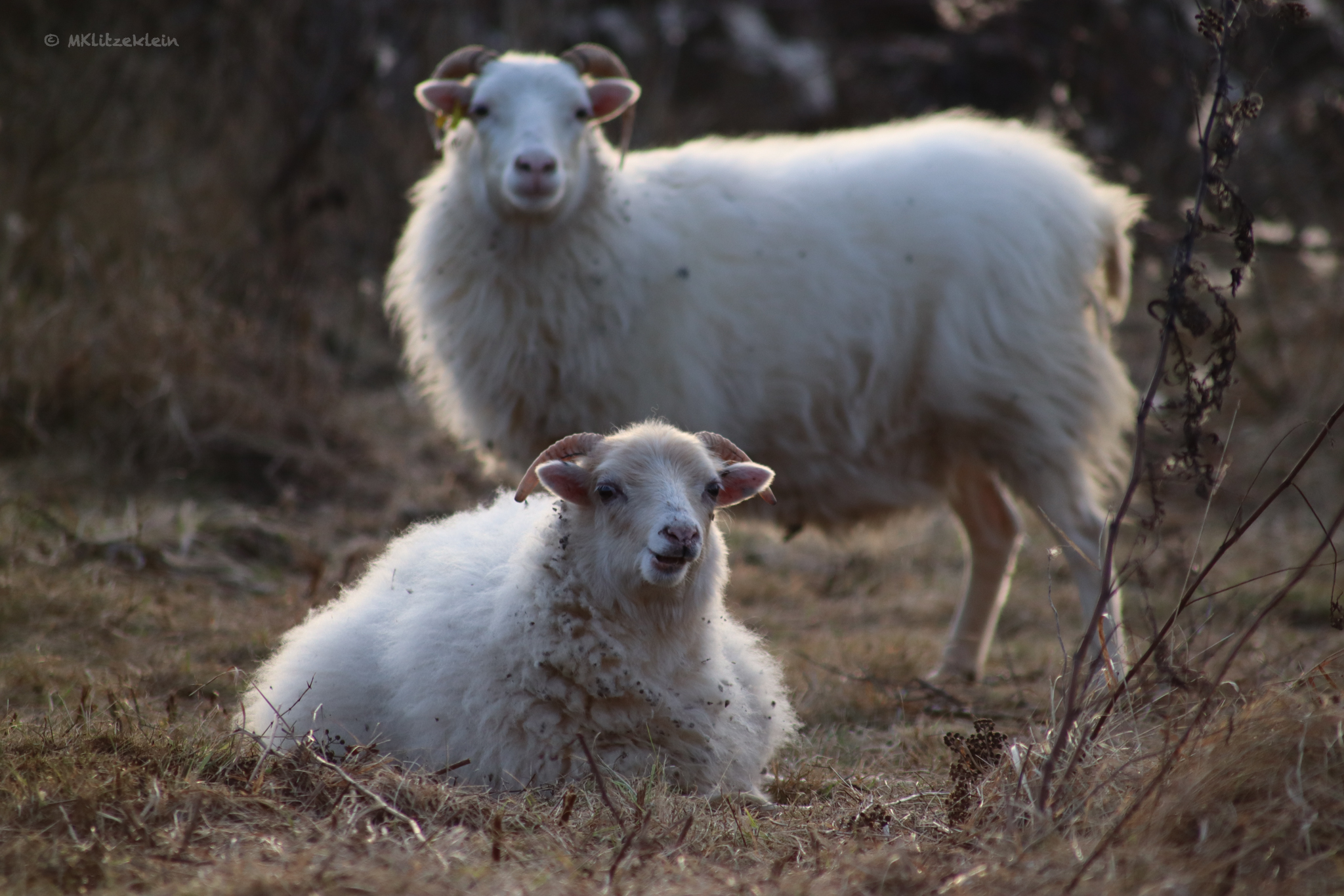 Skudden sind relativ kleine Schafe, zuckersüß und durch den Winter absolut flauschig. Wir müssen uns erst einmal ein bisschen durch das Dornengestrüpp schlagen, aber als wir vor der Weide stehen, hat sich jede Art von Anfahrt und Zuweg gelohnt. Die Sonne sinkt langsam hinter die Hügeln und ein Frühlingsgefühl ergreift mich.