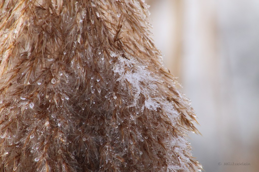 Meine Wetter-App zeigte Minusgrade und so fand ich vereinzelt noch viele eingefrorene Pflänzchen. Ganz besonders hat mich dieser Vogel auf Trapp gehalten. Weiß jemand, was das für einer ist? Er ist auf jeden Fall größer als ein Feldsperling gewesen und trällerte auch ganz anders. Eine Rohrammer vielleicht? Kann mir jemand einen Tipp geben?