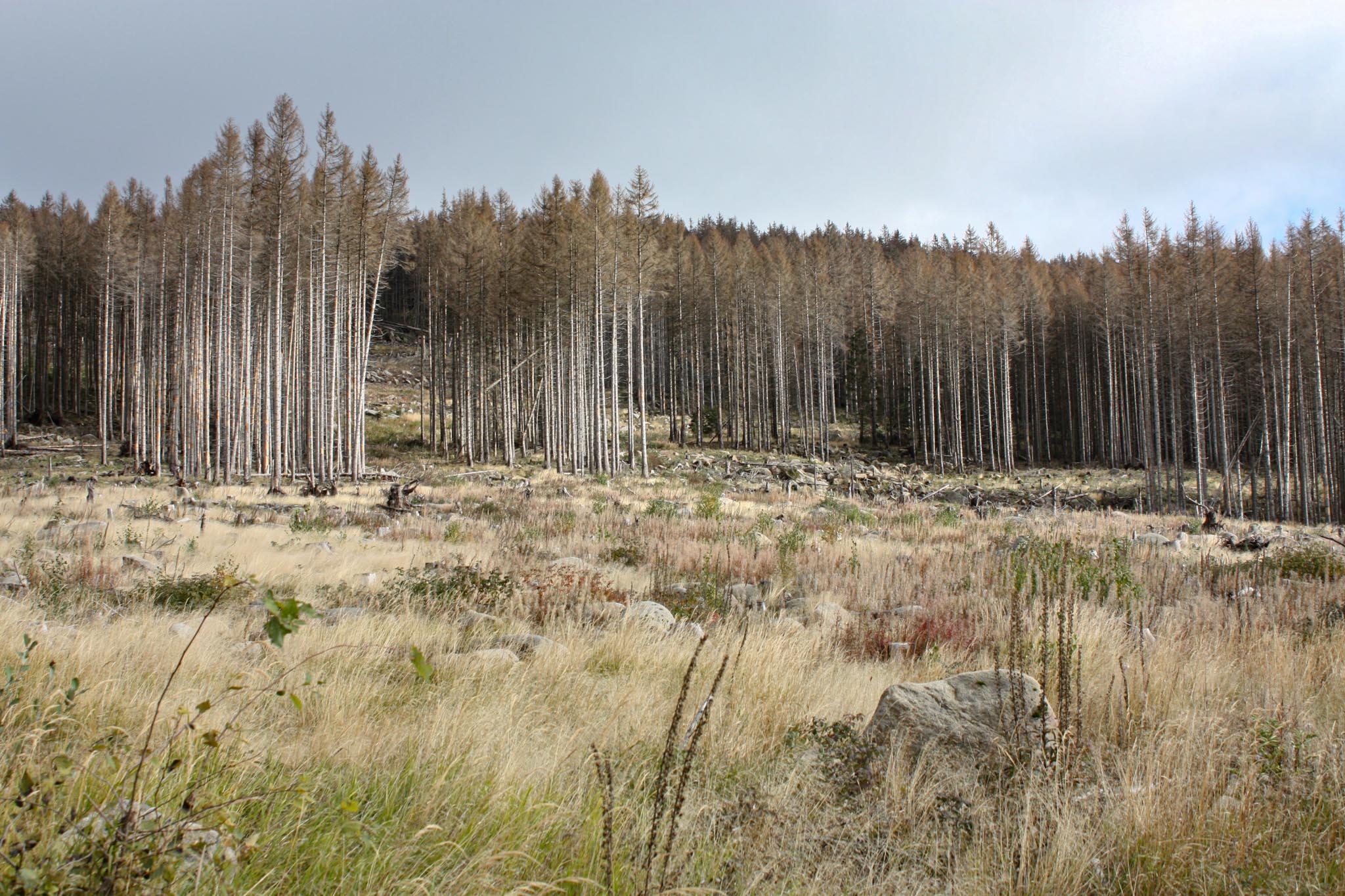Ihr kennt die Bilder (z.B. aus dem Harz) sicher gut. Der Klimawandel führt zu anhaltender Dürre und die enorme Trockenheit macht es dem Borkenkäfer ein leichtes, die Bäume auszuknocken. Borkenkäfer gab es auch damals schon. Es sind nur sehr viel mehr geworden und die Bäume/Fichten sind viel geschwächter. So liegen dann im National Park Harz unzählige tote Fichten. Ganze Flächen, vorher dicht bewaldet, sind nun abgeholzt und kahl. Nicht nur der Harz mit seinen Fichten leidet unter der Dürre. Auch in Hessen sind viele Laubwälder von dem heißen Wetter betroffen und auch hier zeigen sich immer mehr gerodete Flächen.