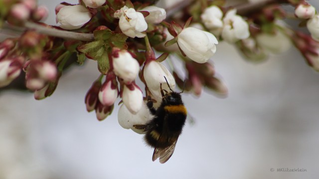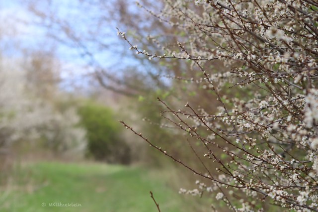 Mich lockt der blühende Weißdorn und die Kirsche. Trotz kühlem Frühling hat sich die Natur dazu entschieden, hier schon ein bisschen Weiß durchscheinen zu lassen. Die Hummeln summen in verschiedenen Brummtönen in einem lauten Chor. Sie fliegen von Blüte zu Blüte und Blüte. Zwei Stunden bin ich unterwegs, begegne zum Glück nicht vielen Menschen, dafür aber unzähligen kleinen Freuden.