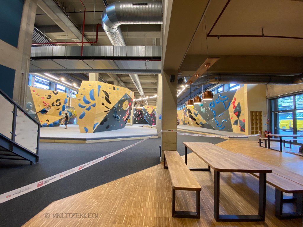Es wurde dann auch ziemlich schnell, ziemlich voll. Zwar musste in der Halle Maske getragen werden, aber beim Bouldern durfte sie abgenommen werden. Mit Maske konnte ich allerdings auch nicht bouldern, da mir nach zwei Routen direkt schwindlig wurde. Ich war in einer Zwickmühle gefangen und ließ es daher eher langsam angehen. Allerdings ging die Power dann für die vielen Bouldern drauf – denn hier war schließlich alles neu und alles musste ein bisschen getestet werden.