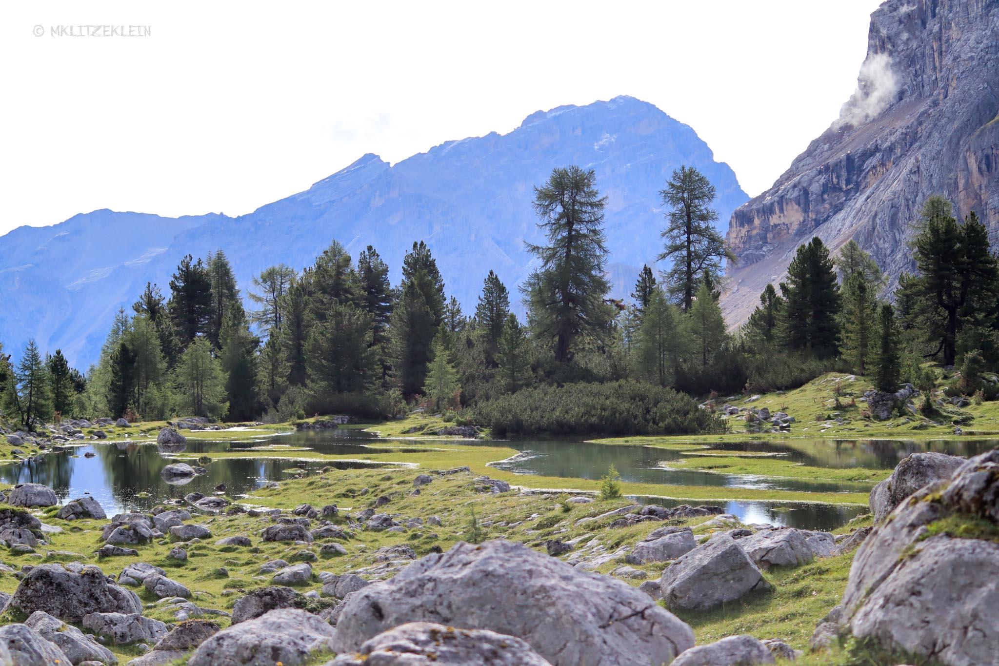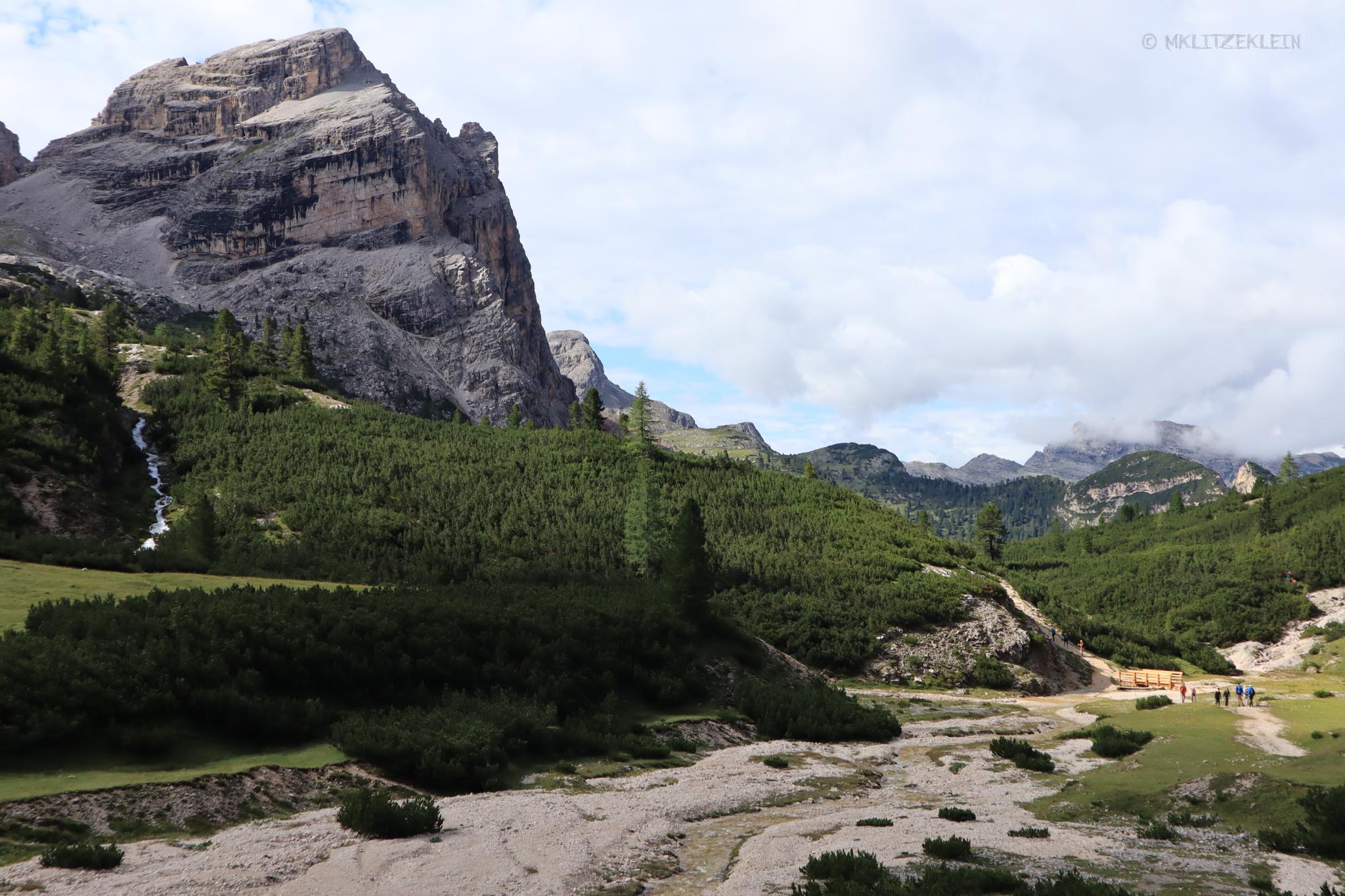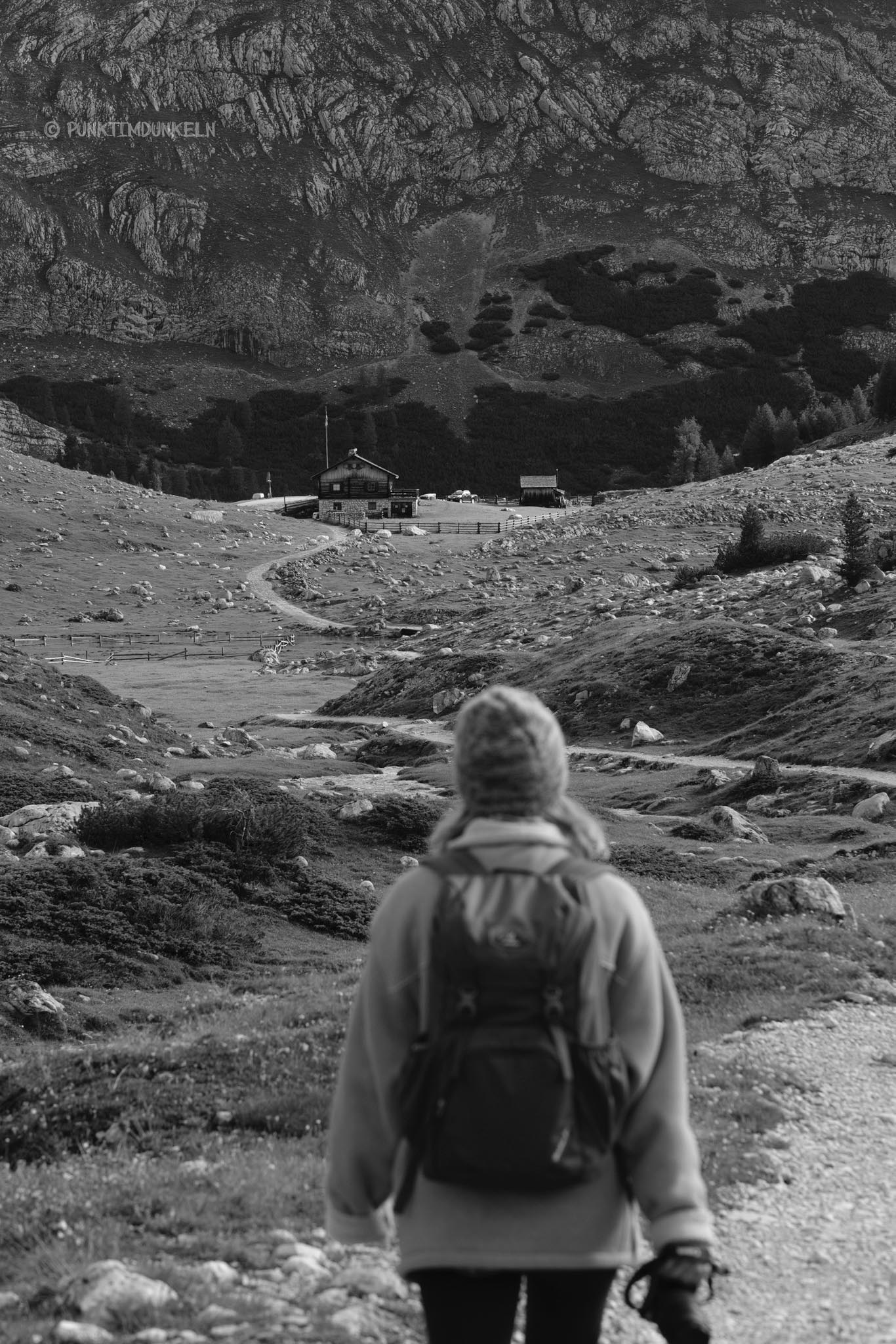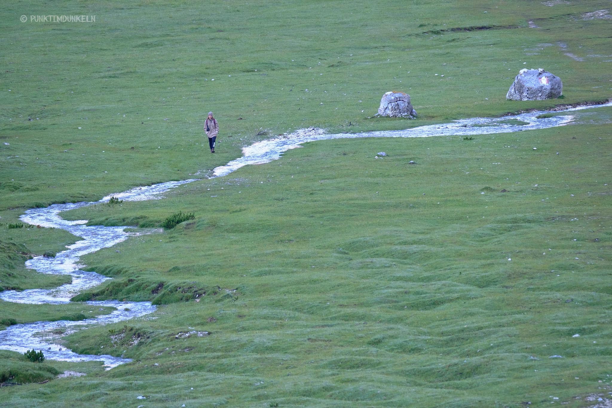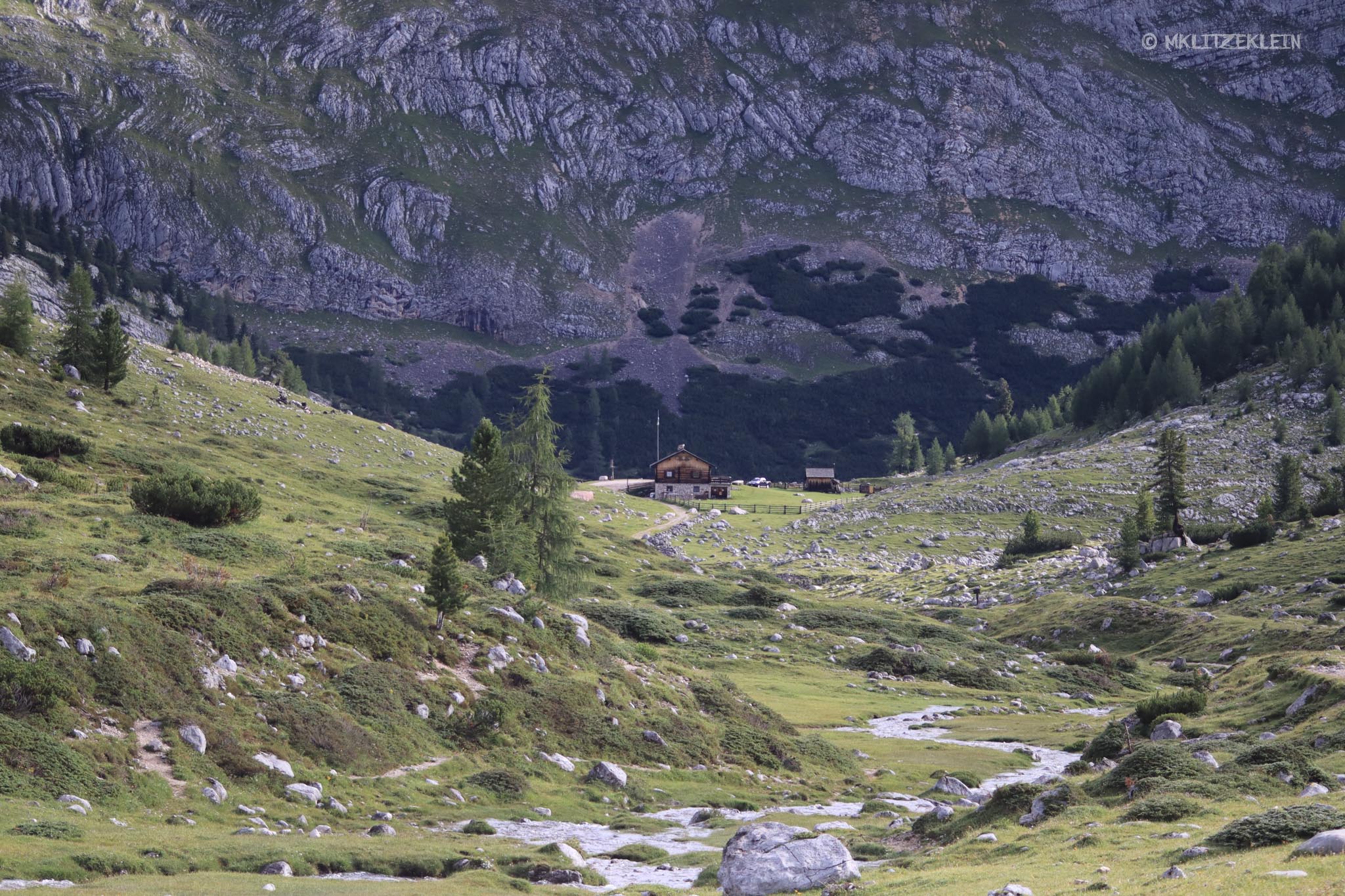 Wir setzten unsere Wanderung noch bis zur nächsten Hütte fort, bis wir entschieden wieder umzudrehen. Ich hätte wahrscheinlich noch ewig so weiterlaufen können. Es gab immer wieder etwas neues zu entdecken, obwohl sich nichts veränderte. Die Dolomiten waren ein großes, ganz reales Wimmelbild. Allerdings war mittlerweile auch schon bis zu ungefähr allen Menschen durchgedrungen, dass es ein schöner sonniger Morgen werden würde. Und der Höhenweg scheint ein beliebter Wanderweg zu sein. Es wurde voll und laut und ich sehnte mich nach der Stille und dem menschenverlassenen Morgen.