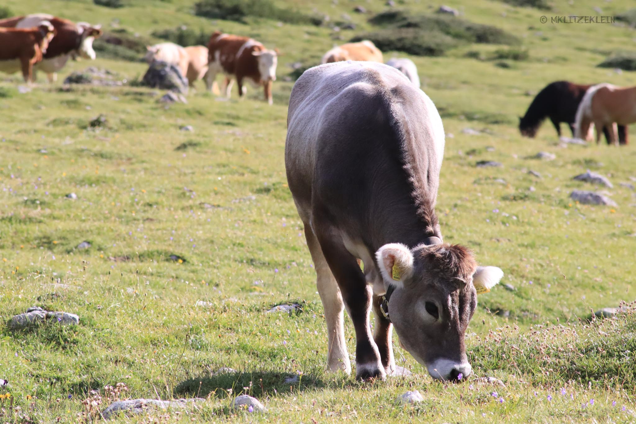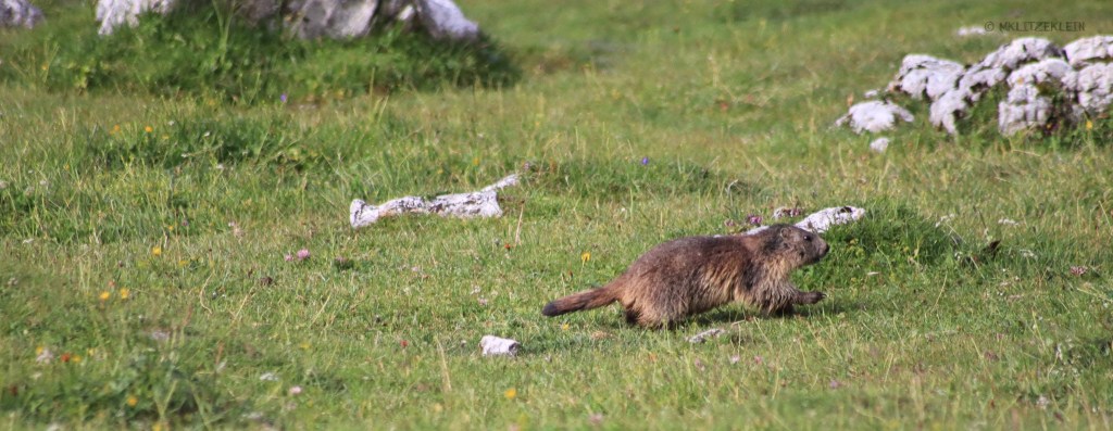 Nach meiner Einzelgänger-Wanderung traf ich am Abzweig zum Lavarella punktimdunkeln. Er war bereits seit 2:30 Uhr unterwegs. Wir trafen uns dort, wo die Sonne über die Bergspitzen wanderte. Nicht nur wir wurden dadurch wach, auch einige Murmeltiere konnten wir beobachten. Aufwärmen mussten wir uns auch erst einmal. Nach gefrorenem Boden und Atemwolken, tat die Sonne sehr gut. Sie küsste uns quasi wach.