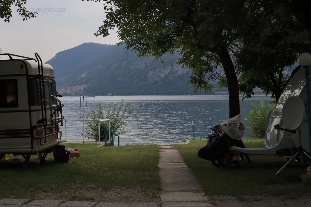 Knappe 1,5 Stunden später standen wir auf einem Campingplatz an einem ganz anderen See. Ein kleiner feiner Platz, familienbetrieben und direkt am Wasser. Ruhiger als am Gardasee war’s hier auch noch. Der Iseosee (Lago d’Iseo) ist den meisten kein Begriff. Mir war er es auch nicht, aber ich bin froh, dass ich auf ihn gestoßen bin.