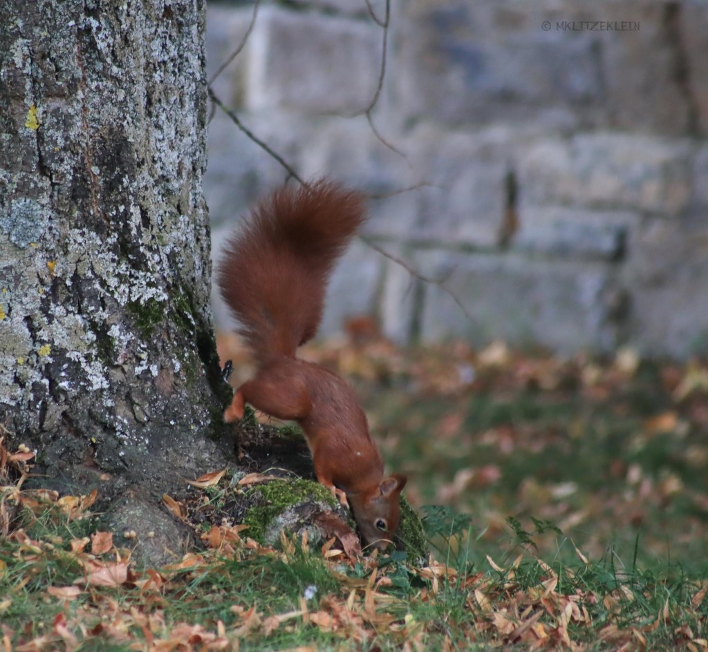 Oben angekommen entdeckte ich drei Eichhörnchen, die sich um Haselnüsse stritten. Es war klar, dass ich hier erst einmal ein bisschen verweilen und beobachten musste. So konnte ich aber auch eine kleine Pause nach der Zugfahrt und dem anstrengenden Lauf durch die Stadt machen.
