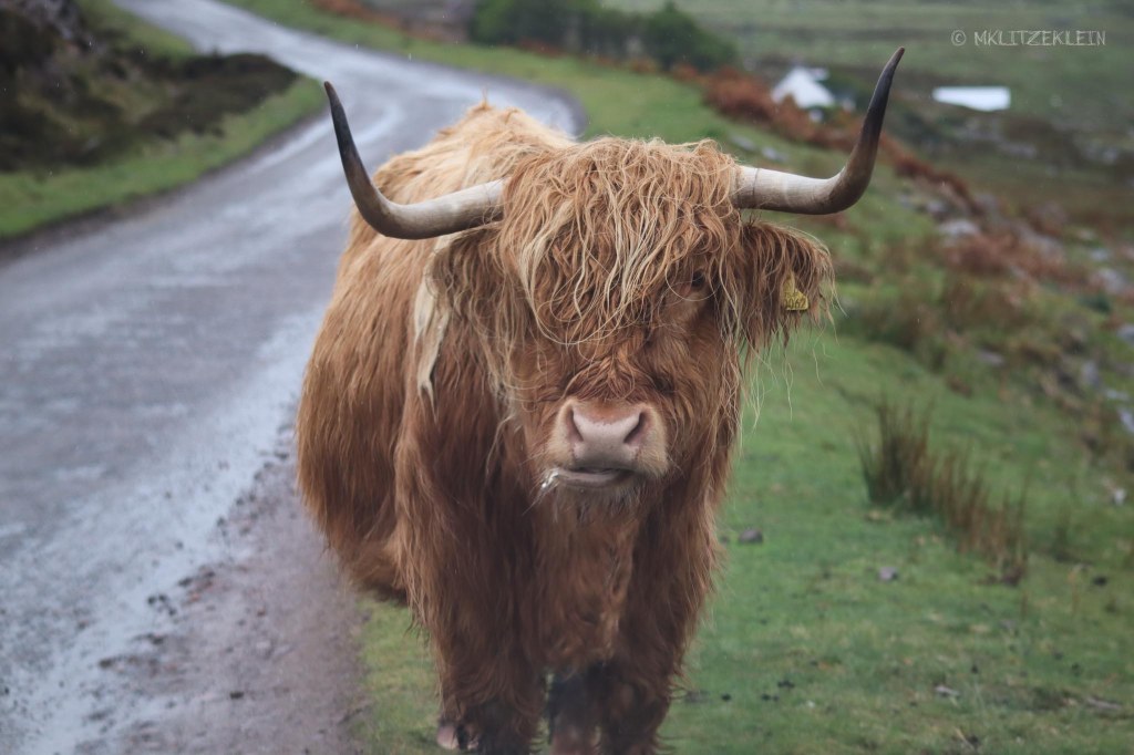 Wir verbrachten die meiste Zeit des Tages im Auto. Der Regen hatte sich festgesetzt und es gab erst einmal keine Chance auf Besserung. Einen kleinen Abstecher, so richtig tourihaft, machten wir dann zum Eileen Donan Castle. Auto auf den Parkplatz stellen, aussteigen, Foto knipsen und schnell weiter.