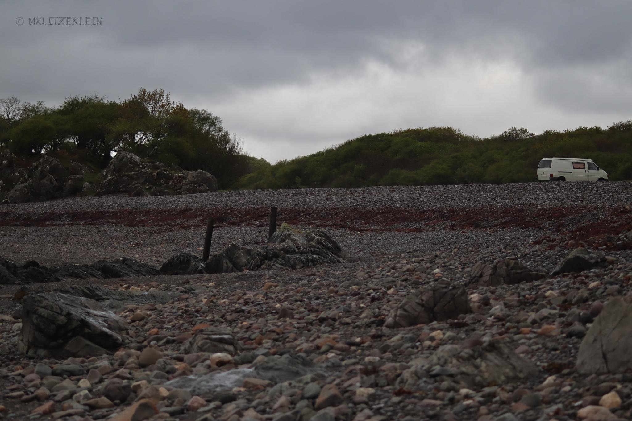 Unser heutiges Etappenziel war Isle of Skye. Auch hier starker Wind und Regen. Ich hatte mir in unserer App auch noch den abgelegensten Stellplatz überhaupt ausgesucht. Über eine Single Road ging es unendlich weit über die Insel irgendwo ins Nirgendwo.