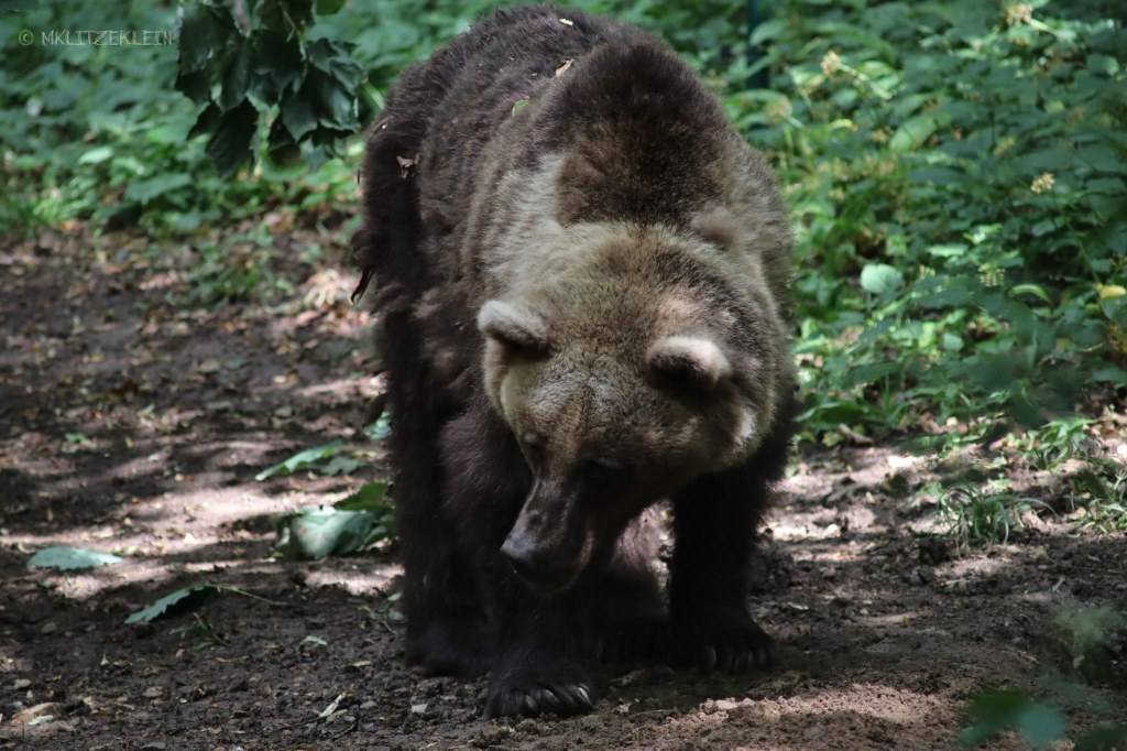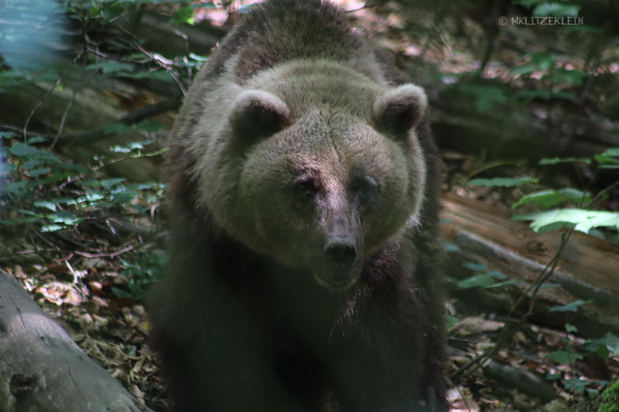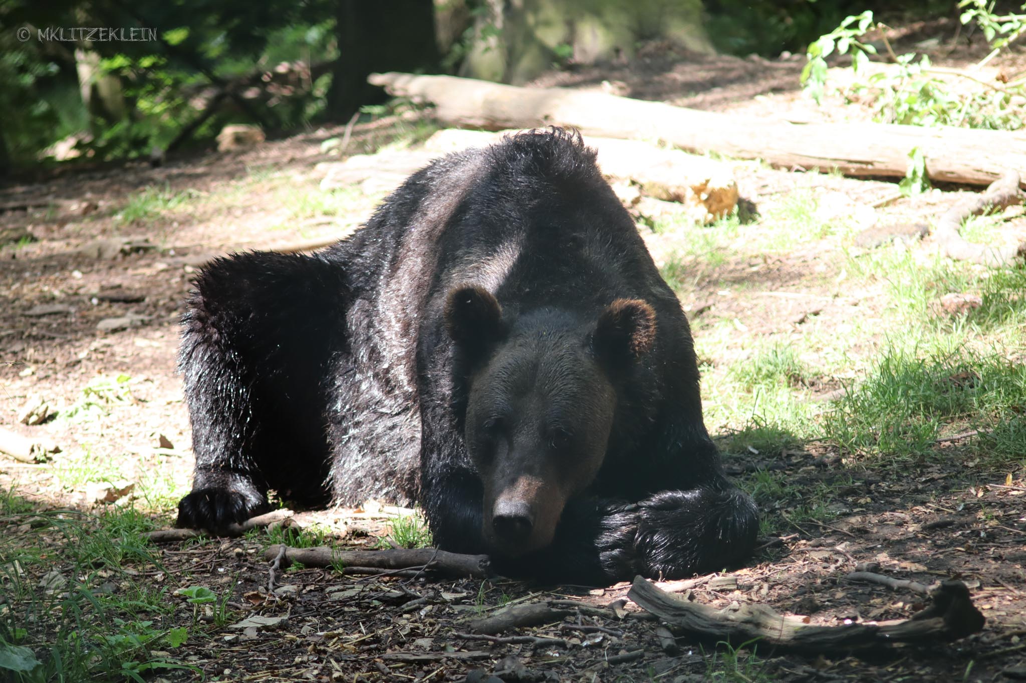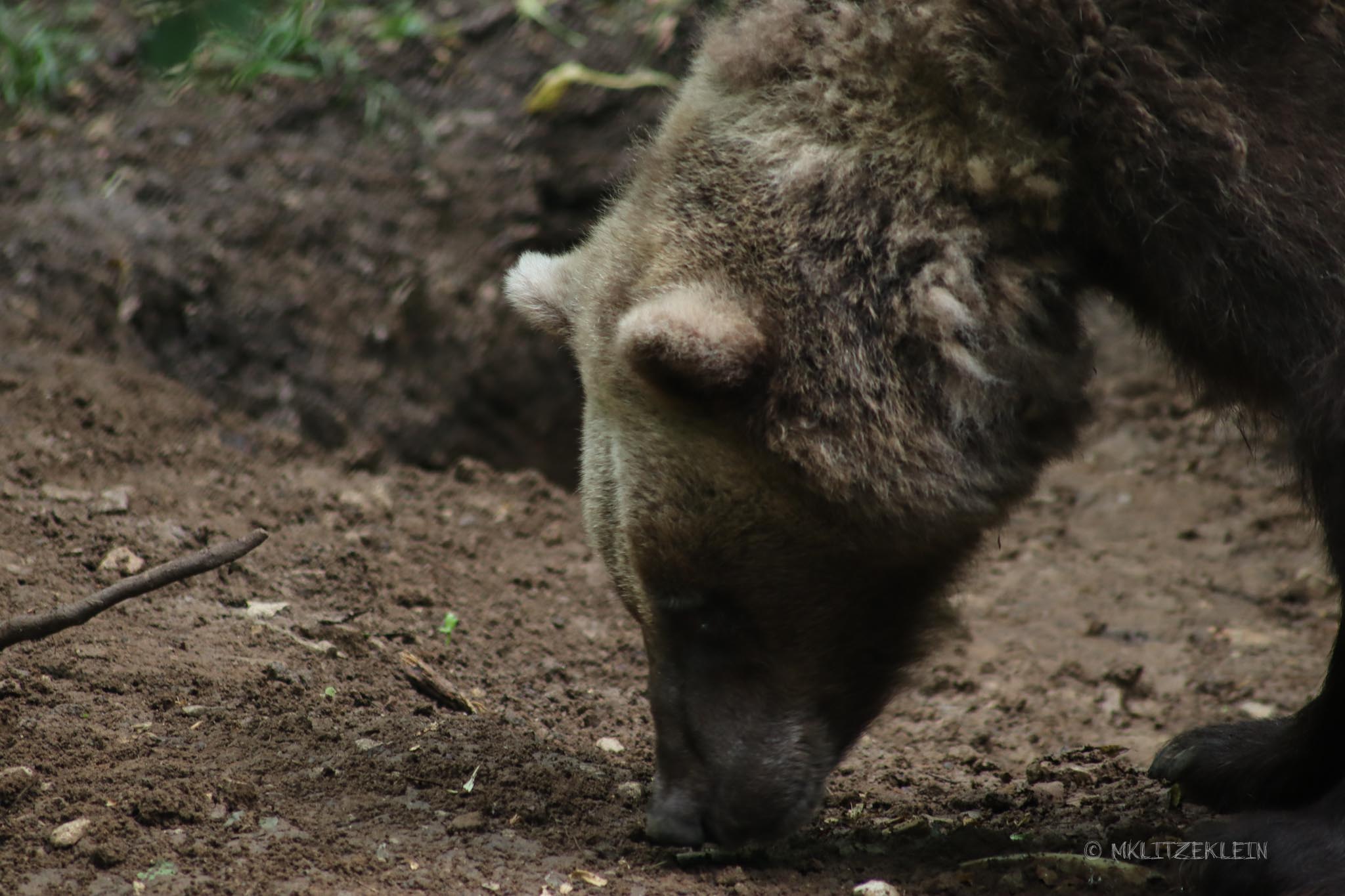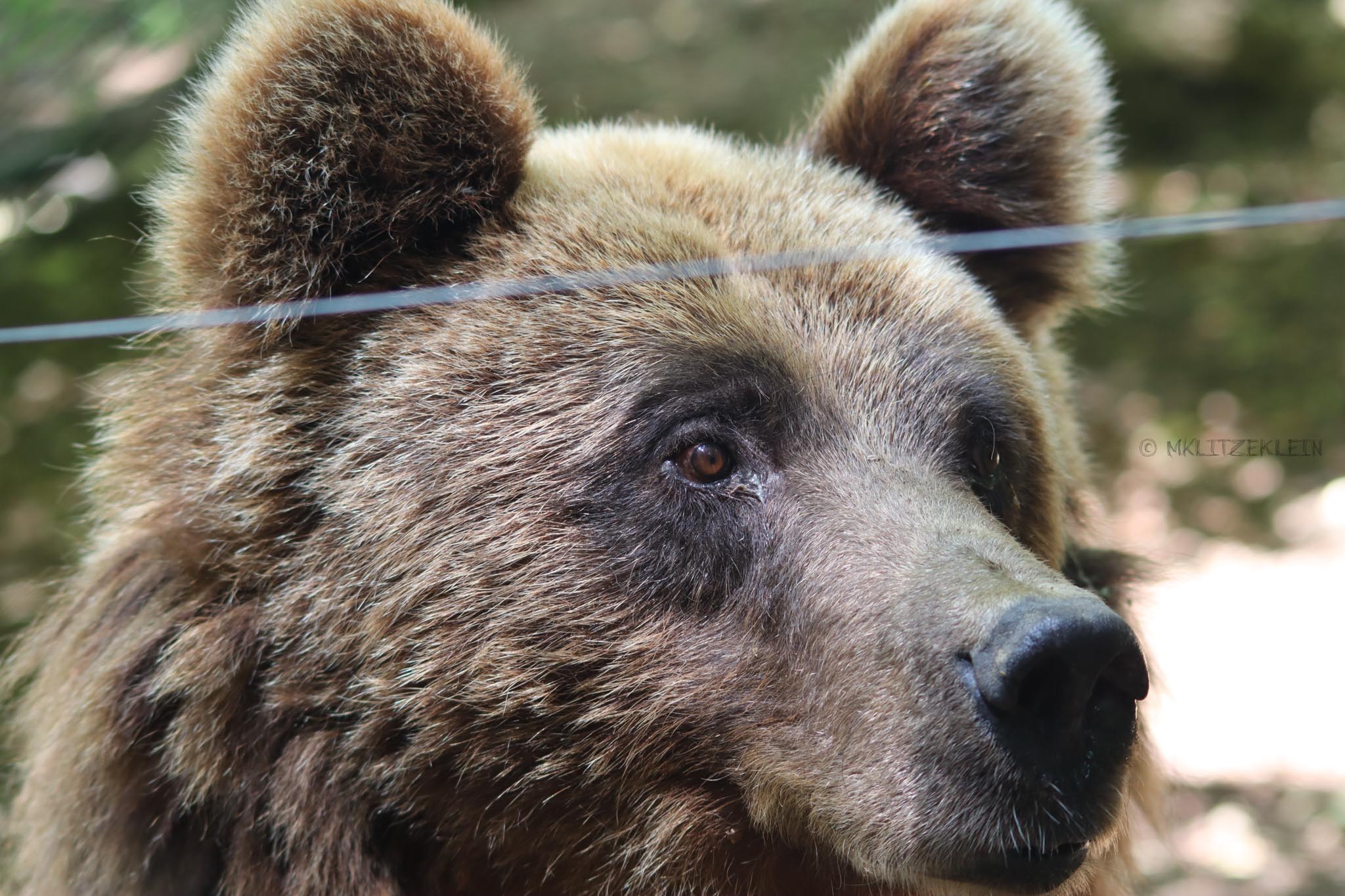 Aber dann gibt es da ja auch noch die Bären. Die könnte ich den ganzen Tag anschauen. Wir wissen nicht so richtig woran es lag, aber immer wenn wir vor den Zäunen standen kamen die Bären zu uns. Vielleicht rochen sie die Wassermelone und die Erdbeeren im Rucksack oder wir strahlten eine Bärenruhe aus. Manchmal spazierten sie nur kurz vorbei. Manchmal legten sie sich auch hin oder setzten sich vor den Zaun. Auge in Auge mit einem Bären, der jede Bewegung genau registrierte und nur durch Maschendraht- und Elektrozaun von mir getrennt war.