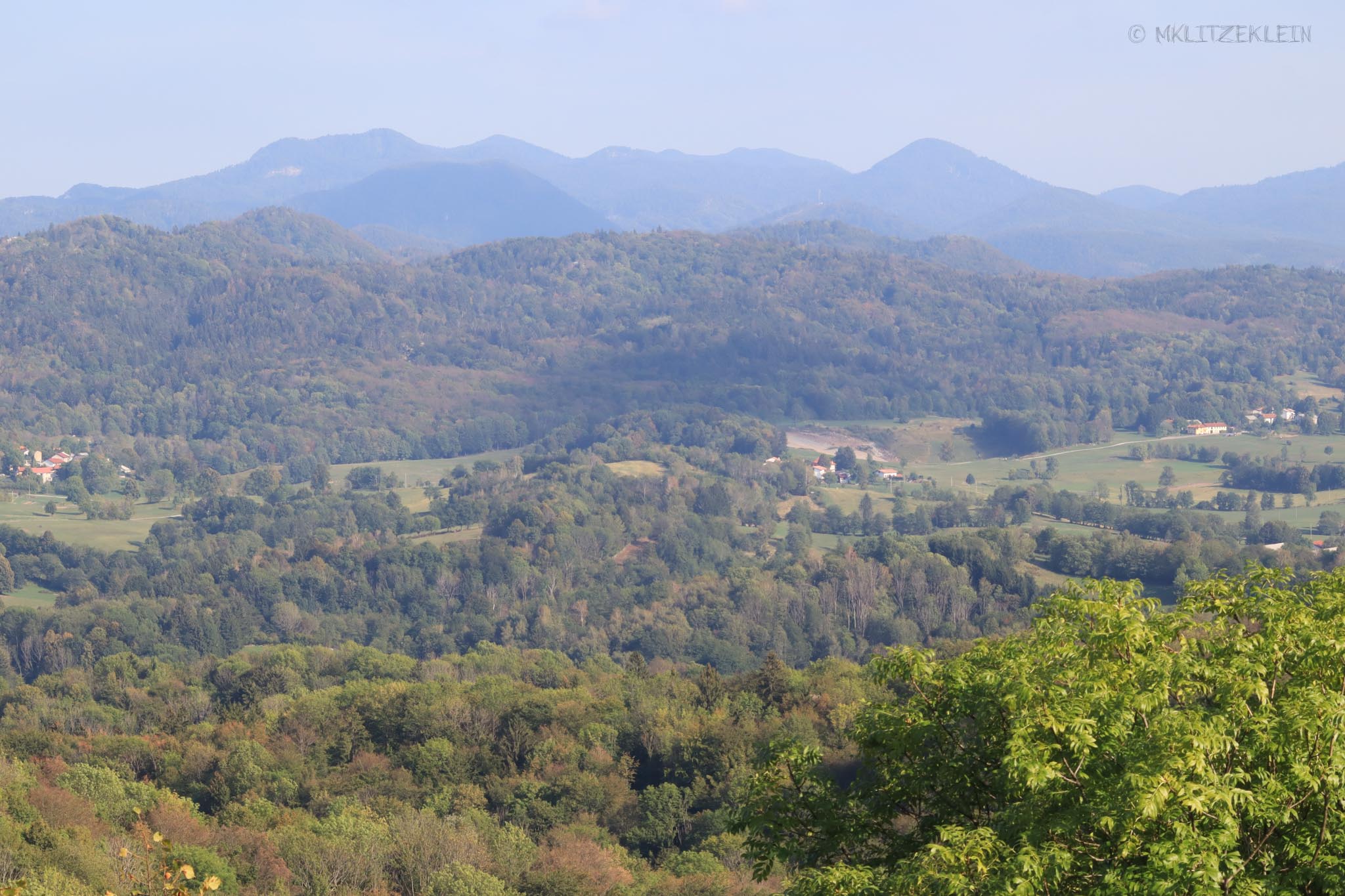 Am Aussichtspunkt genoss er gemeinsam mit uns den Blick ins Land und auf die Hügel. Er stand wie ein kleiner Hund auf den Steinen. Auch wir blickten ins Tal und schauten auf die wunderschöne Karstlandschaft. Die Sonne wärmte auch am Nachmittag noch gut, trotzdem konnte man den Herbst an manchen Bäumen schon vorsichtig erahnen. Zurück folgte uns der kleine Streuner übrigens auch artig, bis wir dann kurz vor dem Ort ankamen und er sich wieder still verabschiedete.