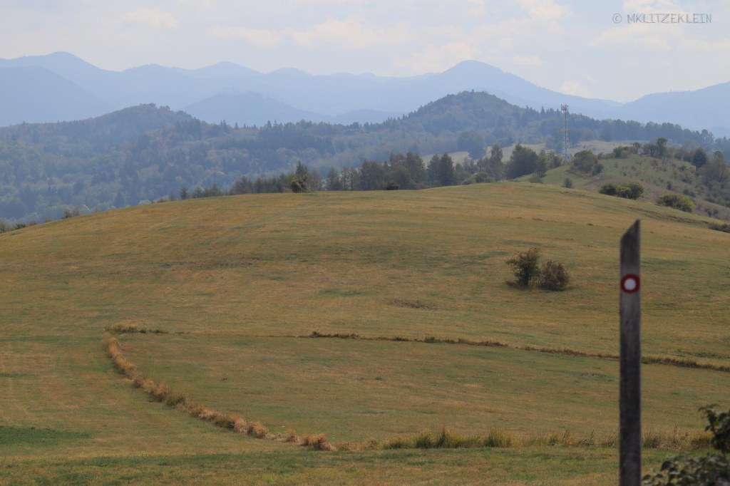 Heute ging es über Weiden und Wiesen, es galt viele Stromzäune zu übersteigen oder darunter hindurch zu kraxeln. Das war schon Abenteuer genug. Wir hatten uns einen Hügelrücken mit kleinem Gipfel ausgespäht und folgten dem gemütlichen Weg hinauf.
