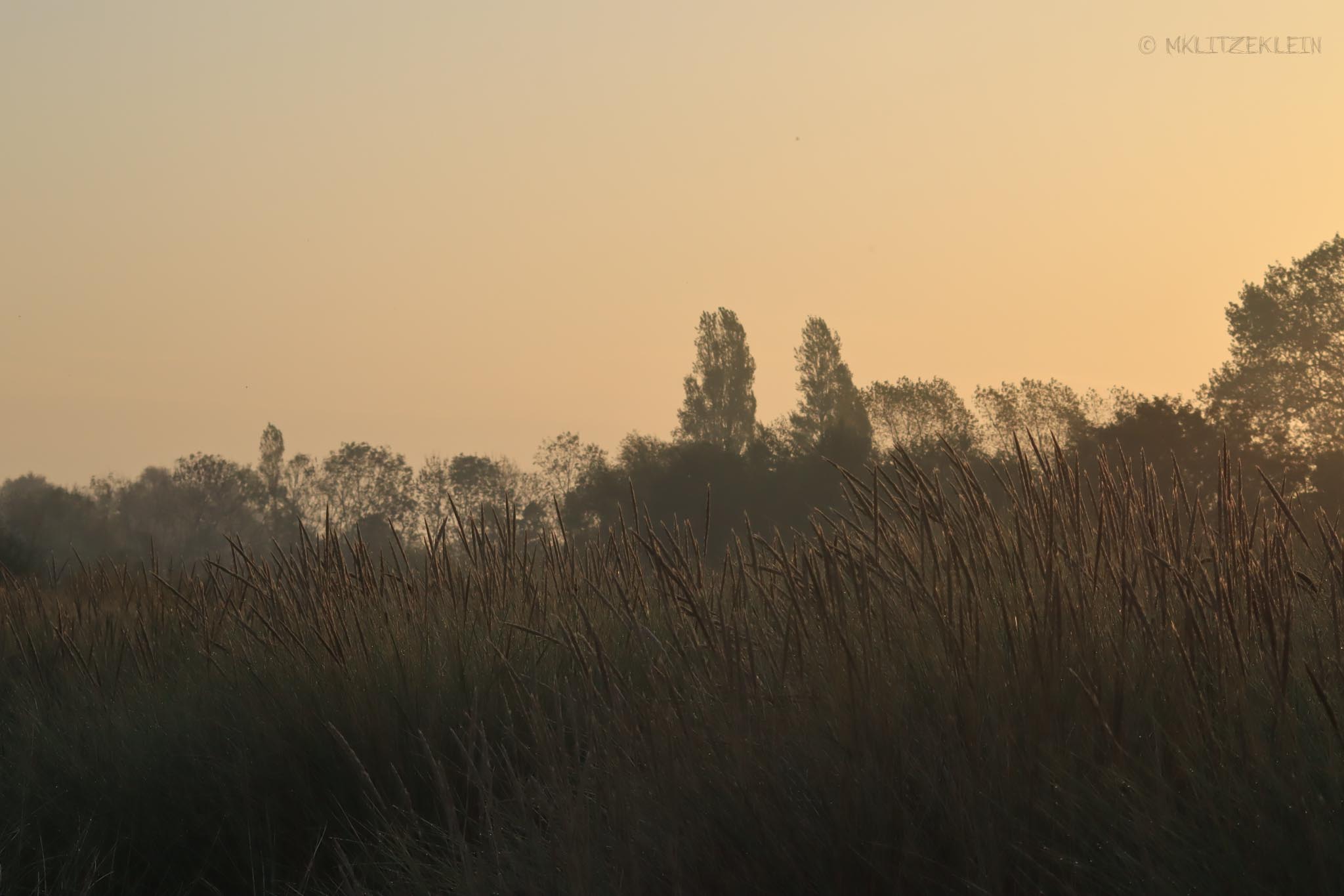 Ein Sonnenaufgang am Meer ist immer besonders. Die nasse Luft hängt schwer in den Spinnenweben. Die Spinnenweben hängen tief in der Dünenlandschaft. Die Dünenlandschaft wird bedeckt von Nebel und Tau. Bis sich die Sonne im Schilf und im Wasser verfängt und von einem auf den anderen Moment alles erstrahlt.