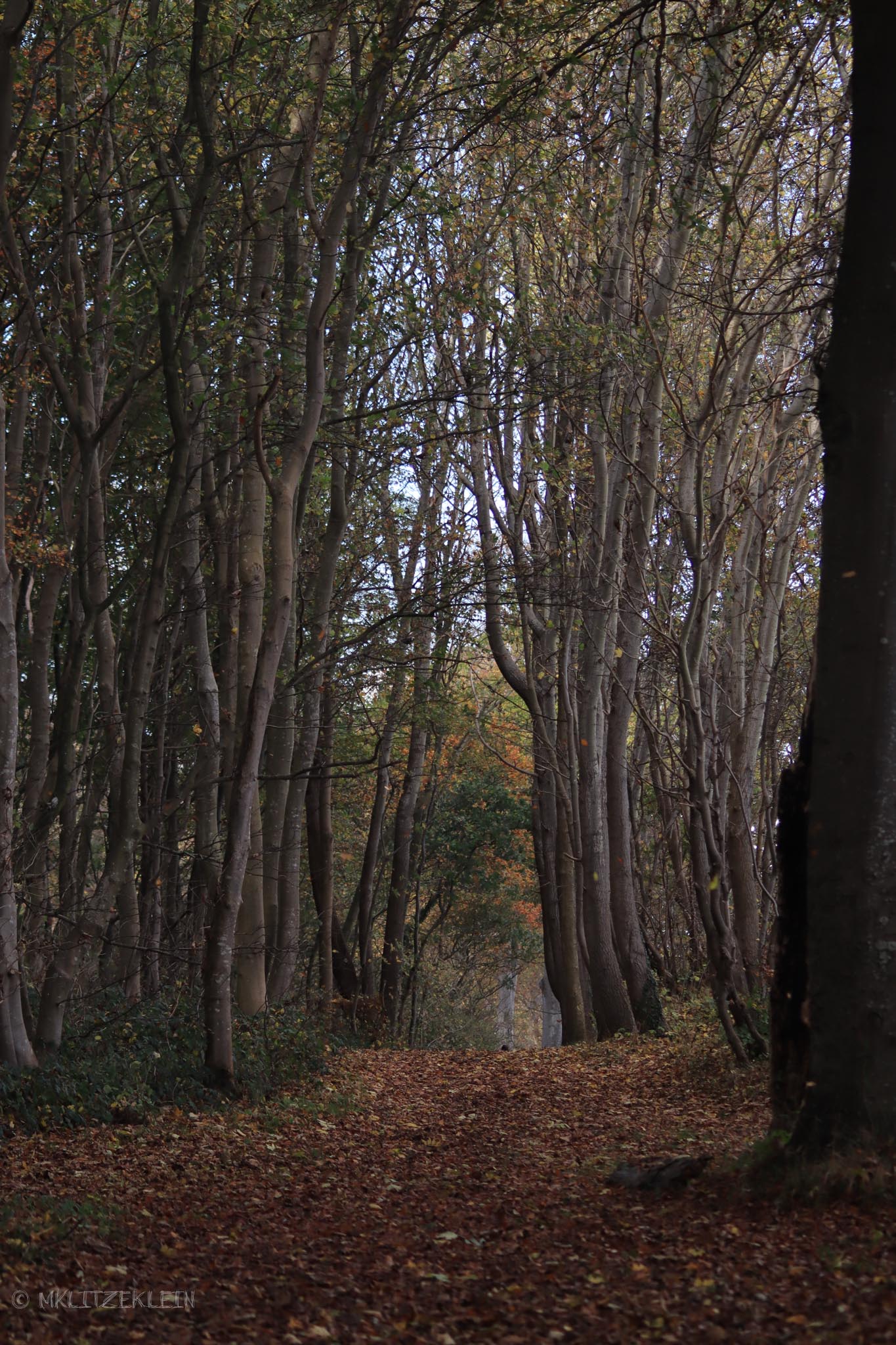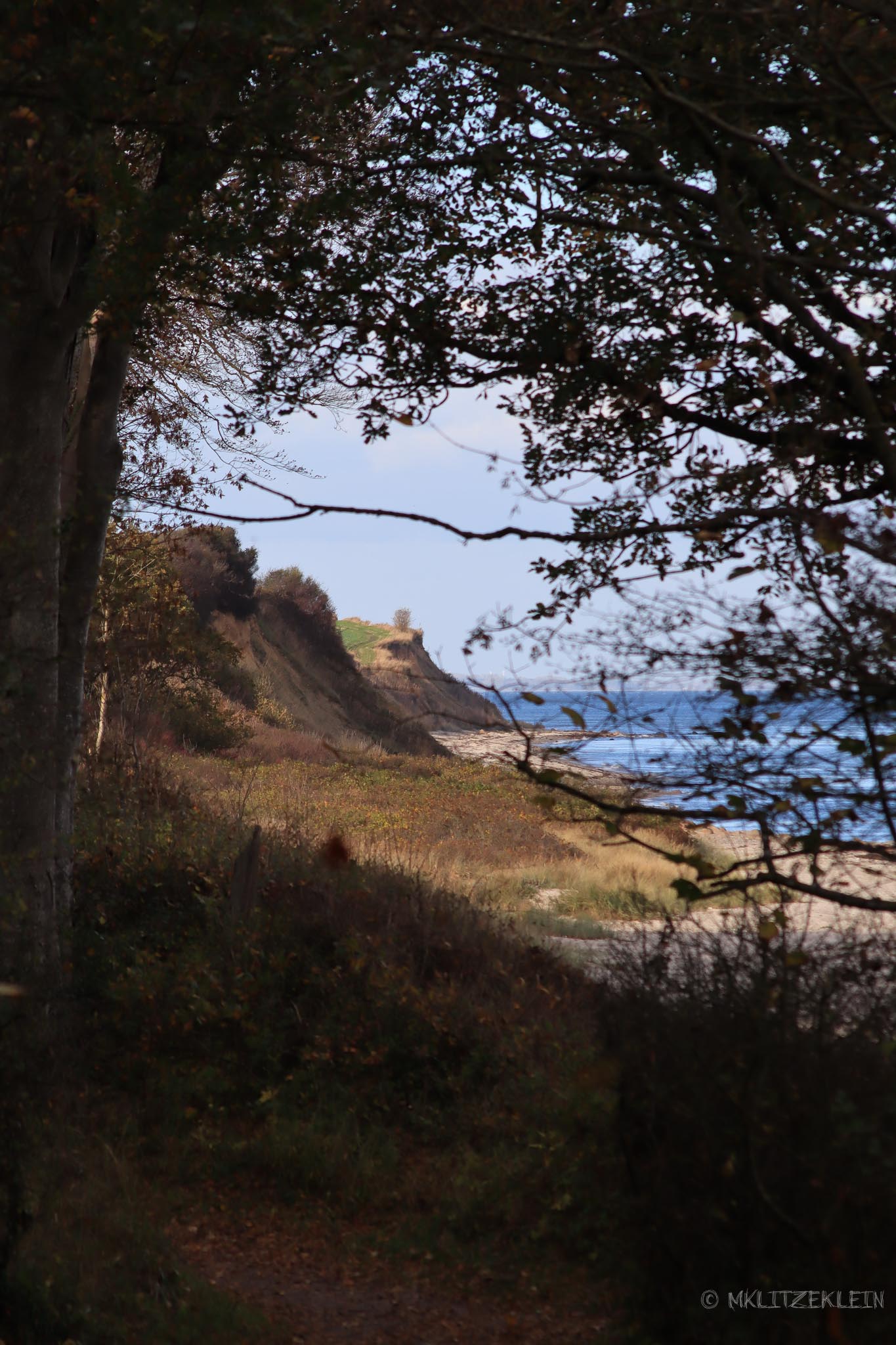 Dann noch schnell und genüßlich durch den herbstlichen Buchenwald und schon spukten uns die Bäume direkt an der Steilküste aus. Endlich. Endlich wieder auf schmalen Pfaden oberhalb der Küste entlanglaufen und rechts nichts als Meer. Einfach nur Meer und irgendwann der Horizont.
