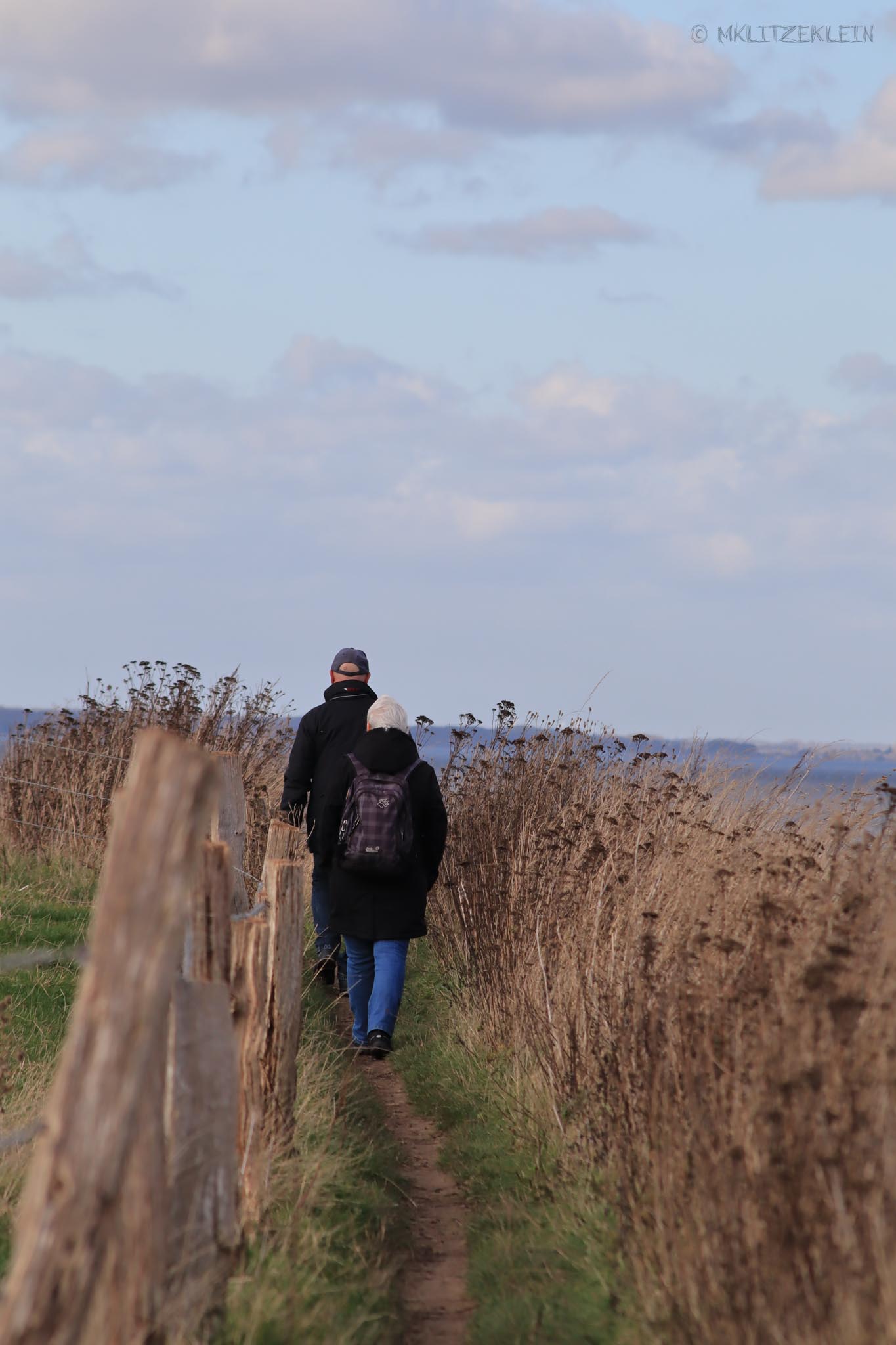 Wir spazierten und spazierten. Letztendlich wurde aus unserem eigentlich gar nicht geplanten Spaziergang eine Wanderung von 12 km. Der Wind pustete mir die Kapuze um die Ohren. Das Rauschen des Meeres klang in den Ohren wie eine Melodie. Über eine Treppe gelangten wir dann auf den Strand und von hier aus traten wir den Rückweg an.