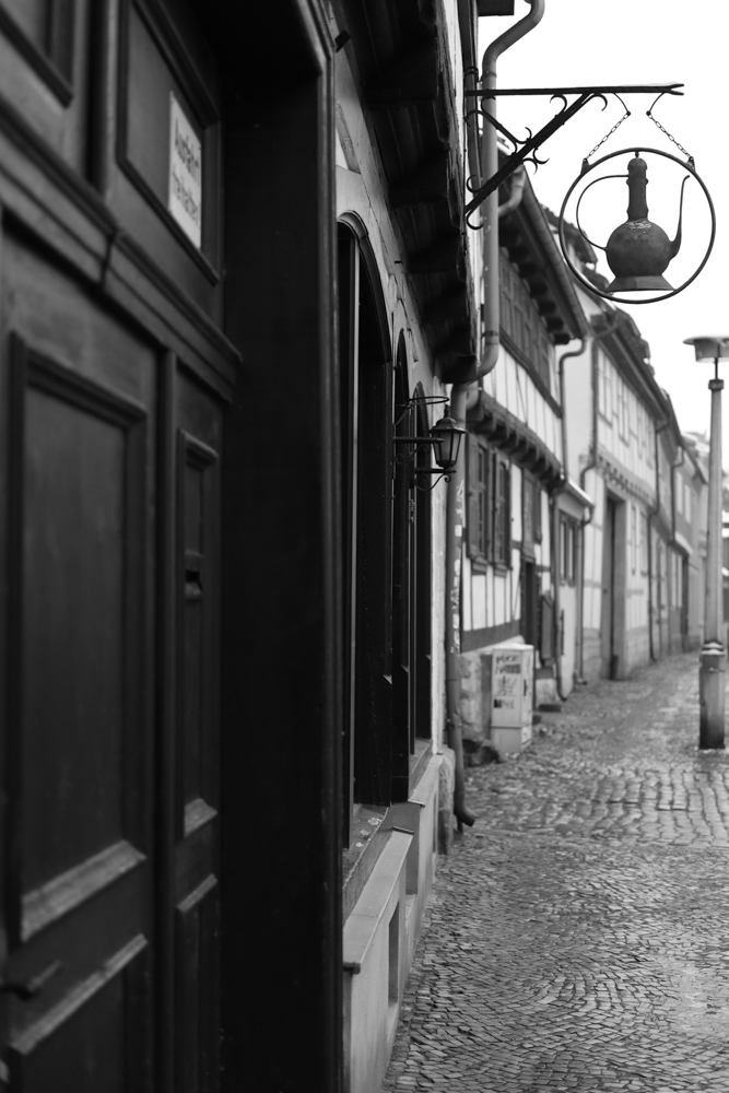 Bei jedem Besuch in Quedlinburg, geht es einmal durch den Schuhhof, dem Vorhof zur Hölle und der Hölle selbst. Diese engen Gassen und schiefen, bunten Fachwerkhäuser sind einfach zu schön anzusehen. Da lehnen sich die Häuser gegen die Schultern der anderen. Sie sehen aus wie die Menschen auf dem Weihnachtsmarkt – schwerfällig nach zu viel Gläsern Glühwein oder gutem Essen.