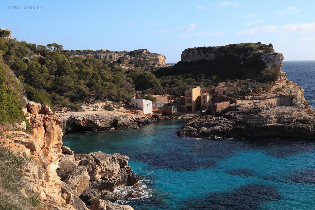 S’Almonia ist ein wirklich malerischer Ort. Zumindest die Bucht begeistert mit einem Postkartenmotiv. Man hat selbst jetzt im Winter direkt Lust in das klare, türkise Wasser zu springen. Von dem Ort aus begann unsere Wanderung. Zunächst umrundeten wir die Bucht, machten doch ein paar Höhenmeter und kamen dann am Küstenabschnitt an. Von hier aus ging es nur noch gerader Strecke.