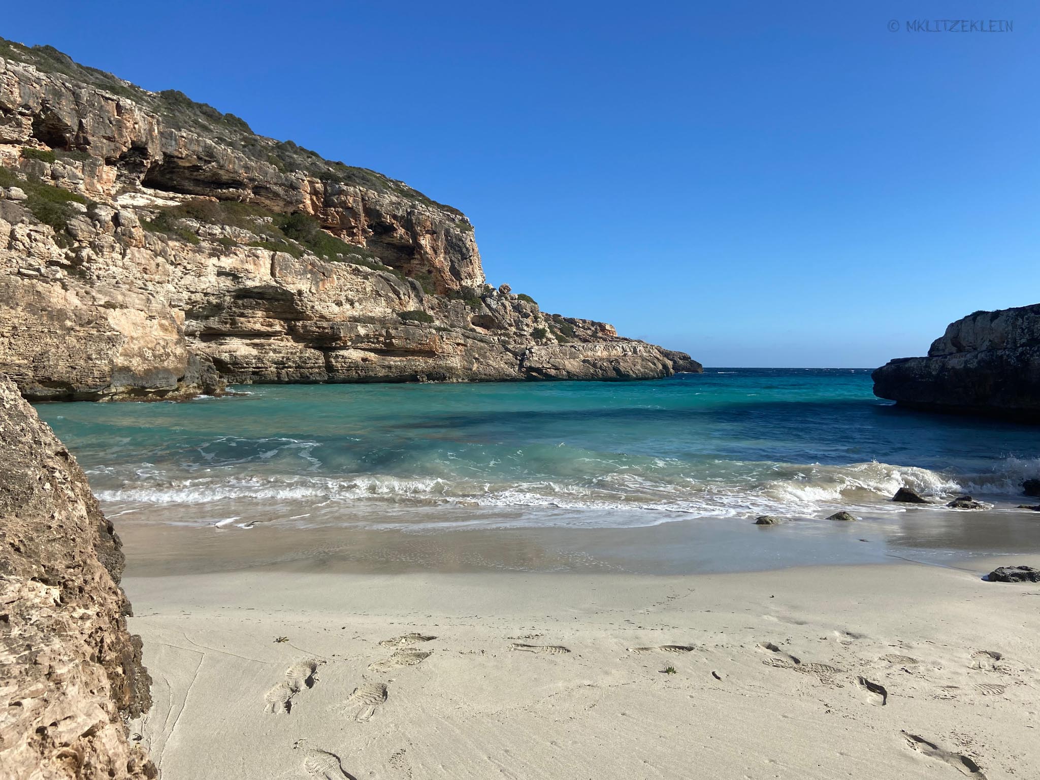 Unser eigentliches Ziel war die ca. 5 km entfernte Cala Marmols. Die Marmorbucht. Auch im Sommer sollte sie nicht großartig besucht sein – ehrlich gesagt wunderte mich das nicht. Die wenigsten werden einen 5 km Fußweg als „Anreise“ bei 35 Grad im Schatten in Kauf nehmen. Da konnte die Bucht noch so schön sein. Wir überzeugten uns dann aber doch mal davon, ob sie hielt, was sie versprach.
