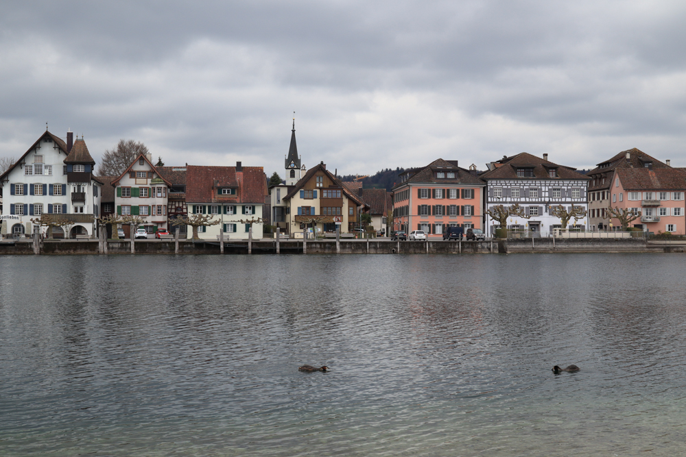Vom Ufer aus schaute ich wieder einmal auf das Nachbarland. Die Schweiz hatte ebenfalls kaltes, windiges und graues Wetter. Es nahm sich nichts. Hauptsächlich genossen wir es jedoch die kleinen Haubentaucher, unzähligen Meisen, die vielen Rotkehlchen und Hausrotschwänze und eine kleine Rohrammer zu beobachten. Leider kroch die Kälte viel schneller in die Glieder, als ich es befürchtet hatte.