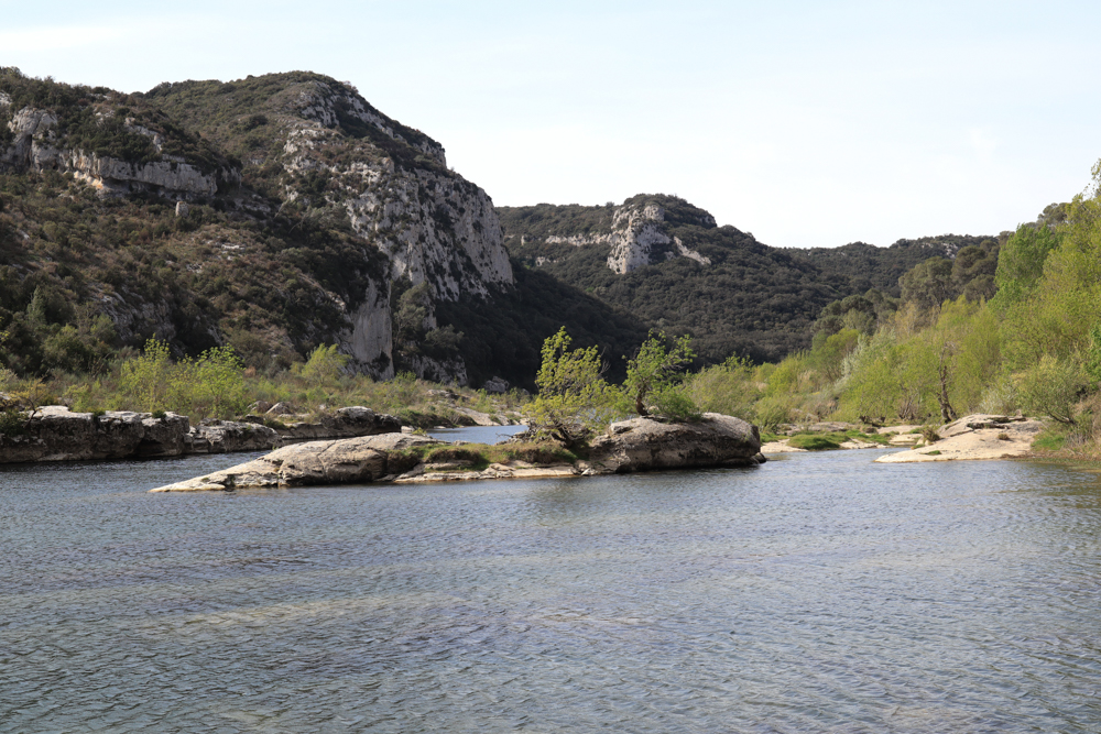 Parkplatzsuche erfolgreich und mit Glück abgeschlossen. Dann die Rucksäcke aufgeschnallt und los kann die Wanderung gehen. Im Ort Cassagnols ist auf jeden Fall Kanu-Tourismus angesagt. Das ist aber heute nicht unser Plan. Mit Ms Eltern zusammen laufen wir am Fluss entlang.