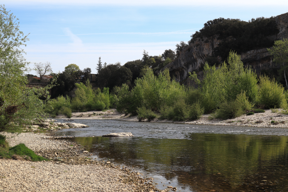 Parkplatzsuche erfolgreich und mit Glück abgeschlossen. Dann die Rucksäcke aufgeschnallt und los kann die Wanderung gehen. Im Ort Cassagnols ist auf jeden Fall Kanu-Tourismus angesagt. Das ist aber heute nicht unser Plan. Mit Ms Eltern zusammen laufen wir am Fluss entlang.