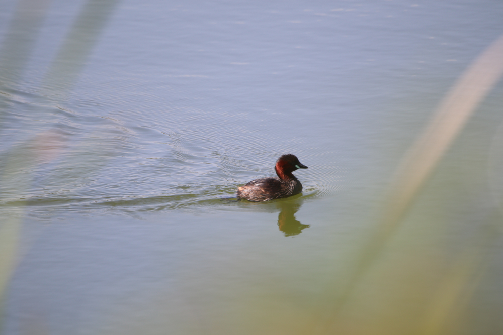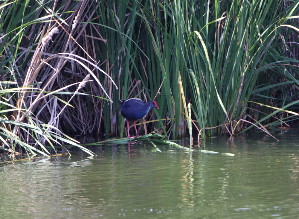 Beim zweiten Hide sehen wir dann doch schon ein paar mehr Vögel. Im Schilf ist großes Treiben: Schwarzkopfweber, Enten und die kleinen Zwergtaucher. Als ich die Etage wechsle, sehe ich sogar noch die Zwergdommel davonfliegen. Auch ein Purpurhuhn watet mit den langen Beinen durch den Schilfrand. Trotz regen Treibens auf dem Golfplatz nebenan zeigen sich dann doch viele Vögel.