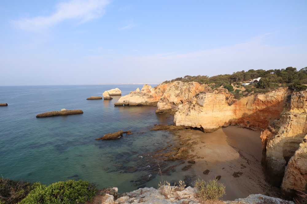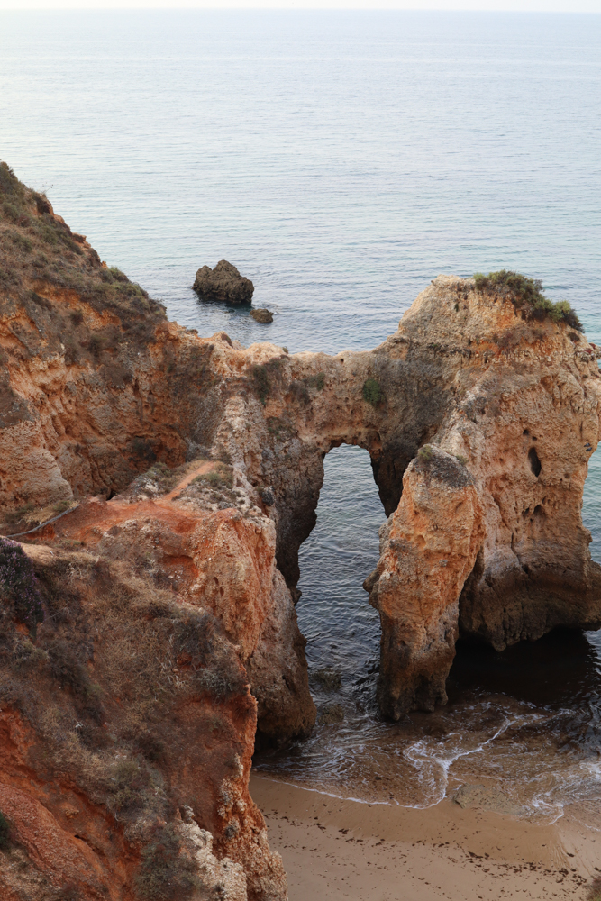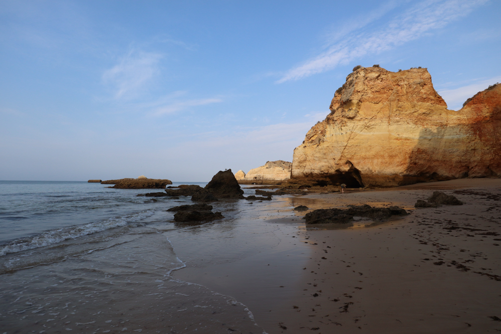 Der Pfad wird immer schmaler. Eine alte Eisenbrücke hat bereits ihr Gitter verloren. Also muss man über den Balken balancieren. Dann steht man vor einer ca. 2,5 Meter hohen Abbruchkante, wo einst mal eine Treppe war. Die letzten Stufen sind noch zu sehen, jedoch in weiter Ferne. Es wurde provisorisch mit einem Seil und einem Metallstab gewerkelt, sodass man sich zumindest fürs Hinaufklettern festhalten kann. Hinunter muss gesprungen werden. Dieser etwas andere Weg lohnt sich voll und ganz. Das Wasser zieht sich zurück. Wir stehen auf einem kleinen Strandabschnitt und wollen erkunden. Erstmal durch eine Felsspalte, damit wir zur nächsten kleinen Bucht kommen. Die kleinen Schlupflöcher, die uns weiterführen, werden immer enger. Rucksack voran, dann ich hinterher. Eine kleine Kletterpassage auf nassen, glitschigen Steinen. Immer wieder muss kurz angehalten werden, um diese wunderschöne Küste zu betrachten. Immer wieder muss ein Schritt zur Seite gemacht werden, Abstand zu den Klippen über unseren Köpfen entstehen lassen.