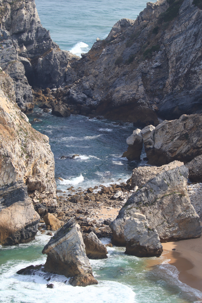 Sintras National Park erscheint groß und gleichzeitig viel bebaut. Natur an der Küste und sonst viel Tourismus. Überall eigentlich viel Tourismus. M‘s Eltern schicken ein Foto von 2013. Grün überlagert das Bild, da wo nun alles sandig grau ist und die Klippen abzubrechen drohen.