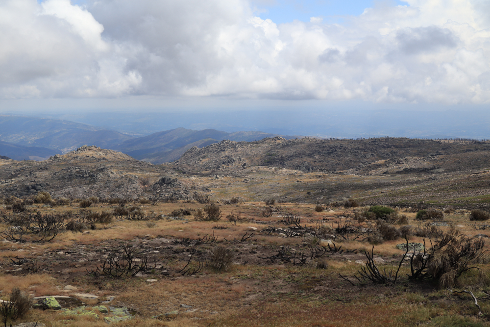 Der Parque Natural de Serra Estrela hat das höchste Gebirge Portugals. Was er auch hat: Regen und Hagel. Zum ersten Mal seit vielen Wochen können wir das Hochdach nicht öffnen. Am Vormittag ist alles voller Nebel, die Wolken hängen schwer und tief. Die Landschaft und das Wetter erinnern mich an Schottland. Wir machen uns zu einer kleinen Wanderung auf.