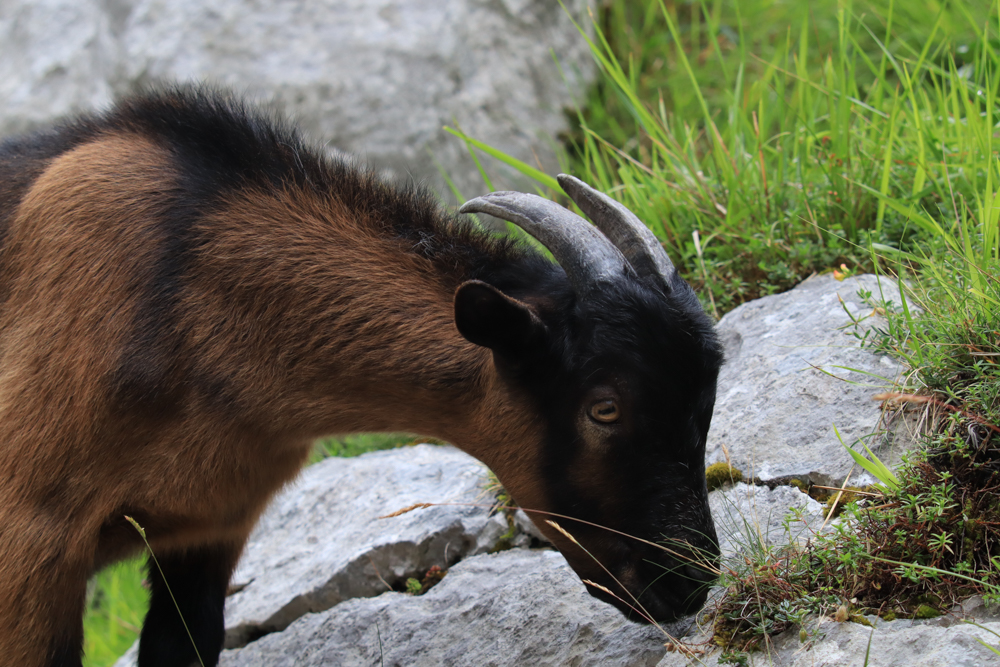Die Geier kreisen heute sehr tief. Am Wegesrand stehen alte verfallene Häuser. Wir treffen auf Ziegen, die neugierig zu uns hinüberschauen, sich dann aber wieder ihrem Essen zuwenden. Feigenbäume wachsen über die Wege. Wir haben es bis zum Pass hinauf geschafft. Von hier aus geht es erst einmal eine kleine Strecke bergab, bevor der Weg in der Schlucht, auf mittlerer Höhe, gerade weiterverläuft.