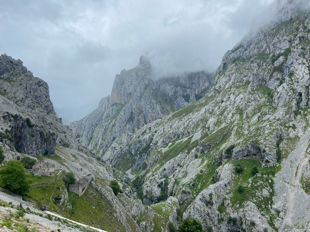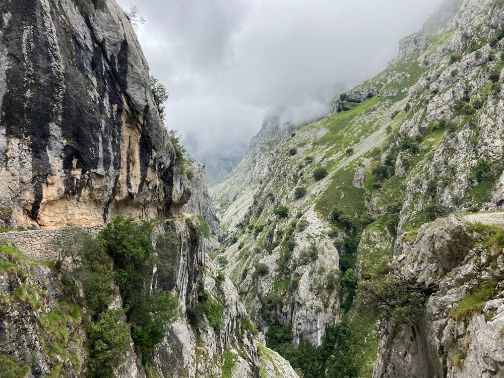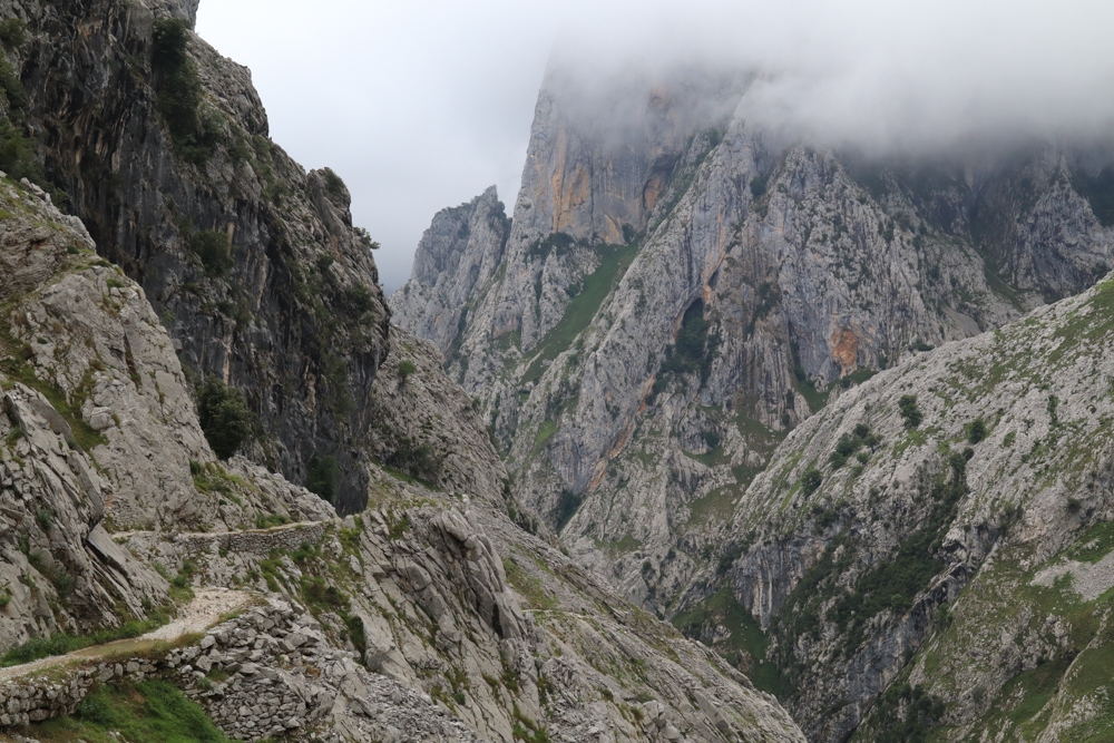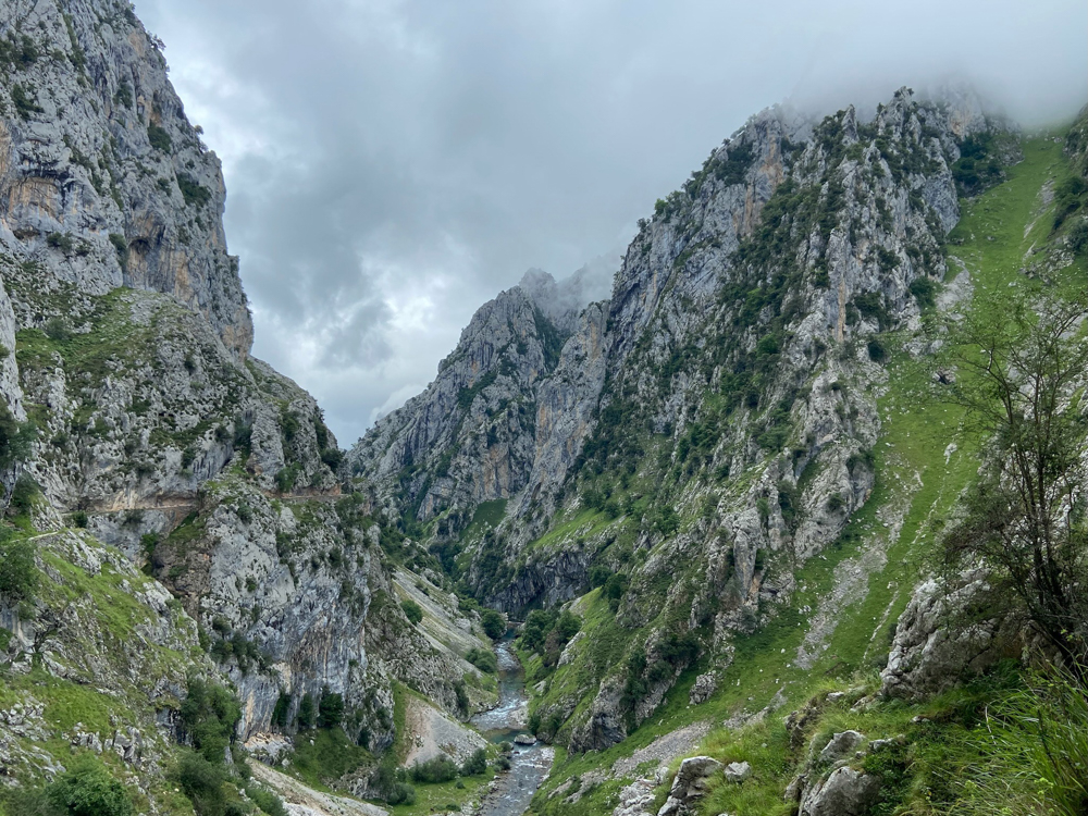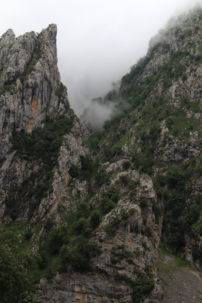 Eigentlich hatten wir eine Wanderung an den Seen geplant, doch die Wolken hingen schwer in den Bergen, sodass unsere Gastgeber uns rieten lieber an die Küste zu fahren. Doch wir hatten doch erst Küste. Ist noch gar nicht lange her. Wir wollen jetzt gerne Berge. Also fahren wir durch Las Arenas hindurch und zur bekannten Schlucht des Flusses Cares. Ich war mir nicht sicher, ob mich die Internetseite eher abgeschreckt oder eher dafür begeisterte. Wenn ein Wanderweg eine eigene Seite hat, heißt das ja meist, dass er sehr überlaufen ist.