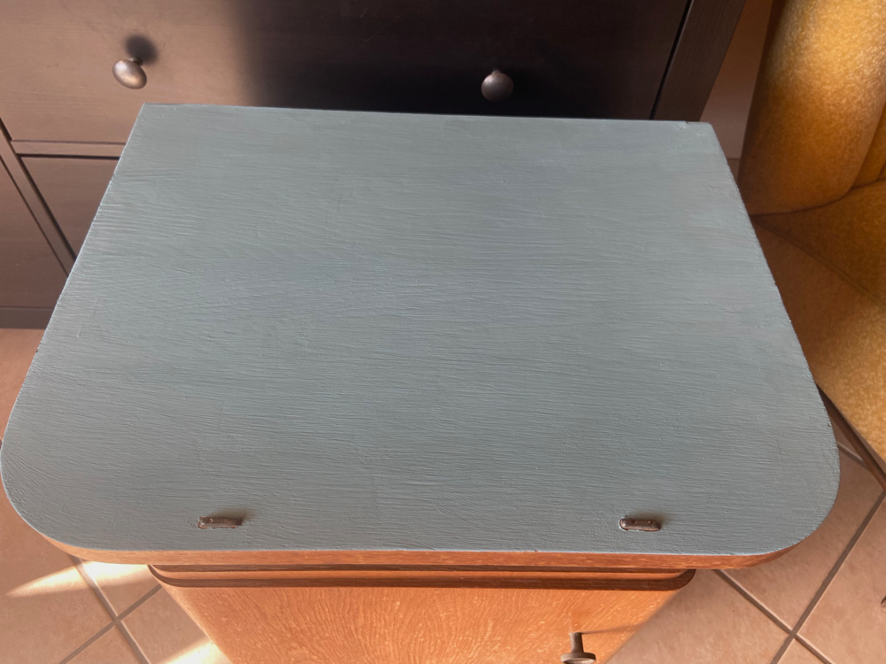 Schon gleich wurden die Nachttische an ihren Platz gestellt und leisten nun seit drei Jahren ihre Dienste. Eigentlich hatte ich mir damals schon vorgenommen, sie etwas aufzupeppen. Vielleicht ein neuer Anstrich oder etwas Öl. Aber bisher war ich einfach nicht dazu gekommen. Nach unserem Umzug vor einer Woche, hatte ich nun endlich etwas Zeit. Materialen einkaufen, abkleben und viiiel nachdenken. Was habe ich eigentlich vor? Wie soll es nachher aussehen? Die ersten Pinselstriche, die zweite Schicht Farbe, Zeit zum Trocknen.