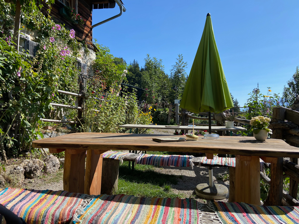 Hinter der Klamm gabelte sich dann unser Weg. Ab zur Oberkogler Alm. Hinauf auf den Berg, wie immer. Zum Glück war es hier etwas ruhiger und vor allem auch weiterhin sehr schattig. An der Almhütte erwartete uns ein wahres Schmankerl. Leckeres Essen und eine wildromantische Hütte. Hier wäre das Adjektiv aber wirklich angebracht gewesen. Mit 200% gefüllten Mägen ging es weiter zu Aussichtsplattform am Oberkogel. Einmal in alle Richtungen schauen, bitte. Weiter gehts, nun dieses mal nur noch bergab.