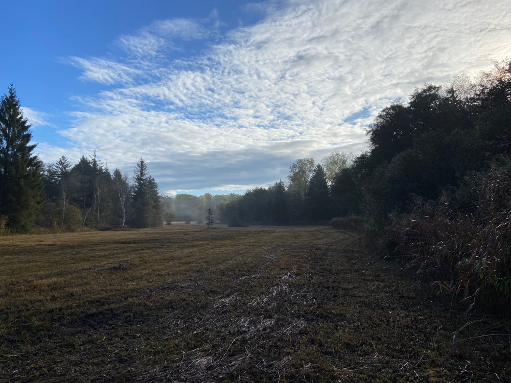Während der Nebelschleier über den See zieht und in den Baumkronen hängen bleibt, stehe ich am Ufer und finde Ähnlichkeiten zum Harz. Noch sind die Blätter nicht alle bunt. Sie hängen noch nass in verschiedenen Farben an den Bäumen. Eichhörnchen sind jedoch schon auf der Suche nach Winternahrung. Wir verlassen den breiten Weg am Wasser und biegen auf einem schmalen Pfad ein.