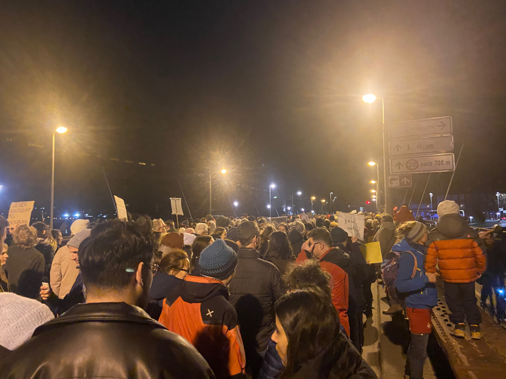 Nach den Großdemos am Wochenende, fand nun auch endlich gestern Abend eine Demo in Konstanz statt. 150 Leute waren angemeldet. Um 18 Uhr war der Park, die Fahrradbrücke und die Kreuzung komplett voll. Der Zug setzte sich in Bewegung, wir reihten uns irgendwann ein. Weit kamen wir aber nicht. Eigentlich sollte die Demo auf dem Münsterplatz mit einer Kundgebung enden. Als die Ersten dort eintrafen, waren die letzten im Park noch nicht einmal losgelaufen. Am Stadttheater war dann auch für uns Schluss, die Demo wurde aufgelöst. Die Polizei sprach von 14.000 Menschen, die Veranstalter von 20.000. Egal, wie viele es wirklich waren, es war ein wirklich riesiger Andrang. Dabei hat Konstanz nur eine Einwohnerzahl von knapp 85.000.