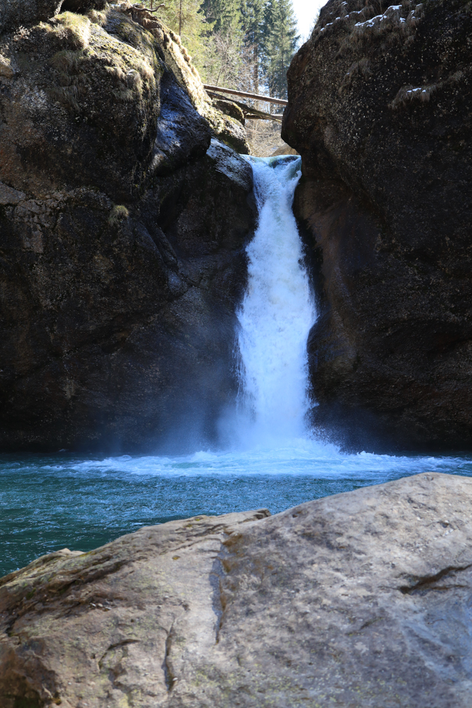 Über Feldwege, Wiesen und durch Waldabschnitte gelangten wir dann zum Buchenegger Wasserfall. Hier tummelten sich dann auch ein paar Leute. Vorher hatten wir großes Glück, dass es so schön ruhig gewesen war. Eine kleine Pause im Schatten und weiter ging es.