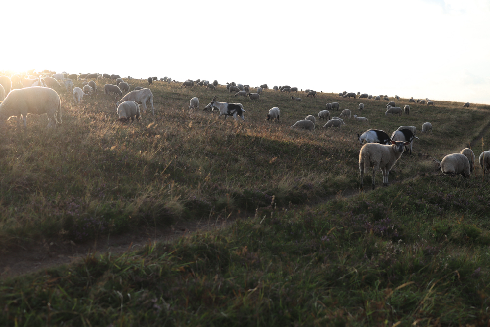 Die Morgensonne kam gerade über den Berggipfel gekrochen, als ich mich hinauf auf den Rücken bewegte. Und wow, was für eine Aussicht. Leider etwas diesig, aber auch das hatte eine besondere Mystik. Die Schafe blöken, das Gras wiegt sich im erstaunlich starken Wind. Ich kam die ersten Kilometer nur sehr langsam voran, weil ich ständig Fotos machen musste, den Ausblick genießen musste, generell mich wohlfühlen musste.