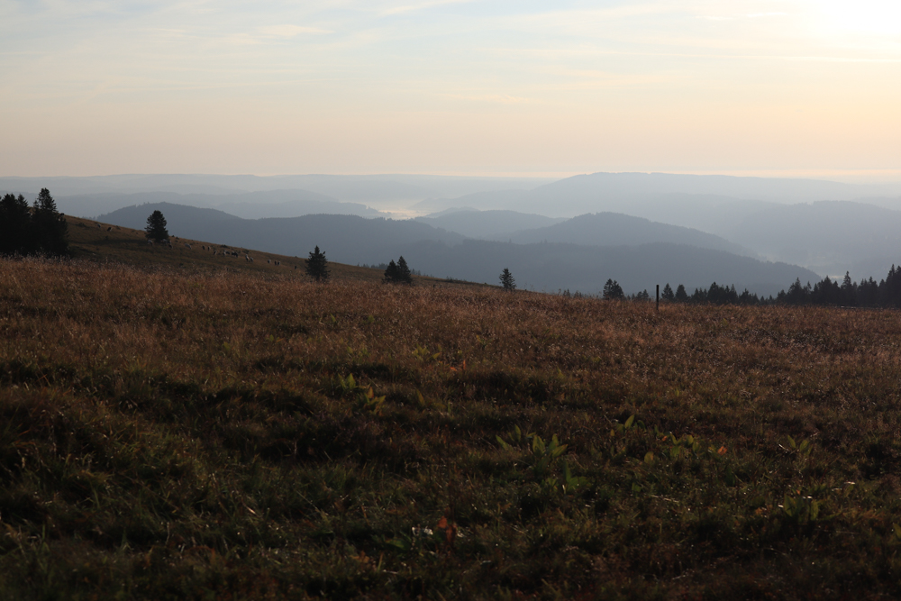 Keinem weiteren Menschen begegnete ich auf dem Feldberg. Nur mir selbst. Meine Freunde haben gefragt, ob ich das öfter mache, ob ich gerne alleine unterwegs bin. Nein. Und Jein. Alleine unterwegs bin ich erst seit der Trennung so richtig. Und gerne alleine unterwegs? Ich würde das schon lieber mit jemanden teilen. Mit jemanden Fotos machen, mit jemanden staunen über die Schwarzspechte und die Steinschmätzer, mit jemanden den Sonnenaufgang anschauen. Aber gleichzeitig fühlt es sich gut an, solche Dinge auch mal alleine zu machen. Sich selbst hier wieder zu finden; zwischen Bergwiesen, Schafen, Gipfel und See.