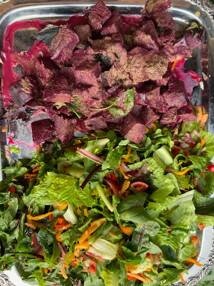 Abends ist großes Hoffest. Koch und Köchin aus dem Nachbarort haben aufgetischt und standen seit 11 Uhr für 70 Personen in der Küche. Ich könnt mich reinlegen ins Gemüse: Rote Beete in Dillsoße, Kartoffeln mit Schmorgurken, Salate und zum Nachtisch Grießbrei mit Erdbeerpü und Crumble. I’m in love. Lang machen wir’s heut nicht. Nach dem Essen hängen wir noch ein bisschen am Feuer rum (hallo Asthma!), während der Rest zur End of Summer Party zieht.