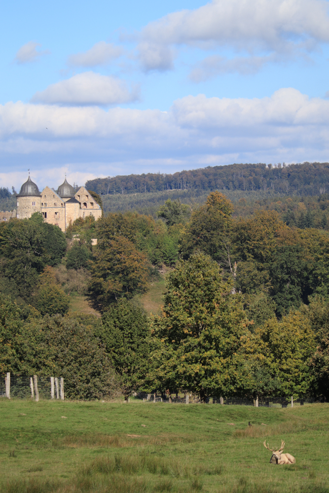 Das Wetter spielte weiterhin den wunderbaren Herbst. Sonnig und golden, aber sehr kalter Wind. Weil ich noch nicht gleich so eine sehr weite Strecke machen wollte, bin ich erst einmal nur bis nach Hessen gefahren. Den Tierpark Sababurg kenne ich gut. Mittlerweile war ich hier schon einige Male. Eigentlich mag ich keine Tierparks, aber ich wollte den Wölfen gerne einen Besuch abstatten, da ich sie im Wendland wieder einmal nicht zu Gesicht bekommen hatte. Außerdem wusste ich sonst nicht so richtig was mit mir anzufangen – wenn ich ehrlich zu mir war.